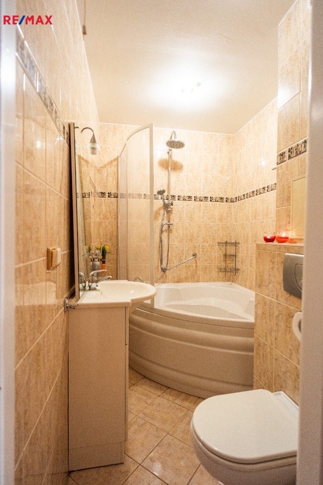 - koupelna s prostornou vanou, umyvadlem a toaletou