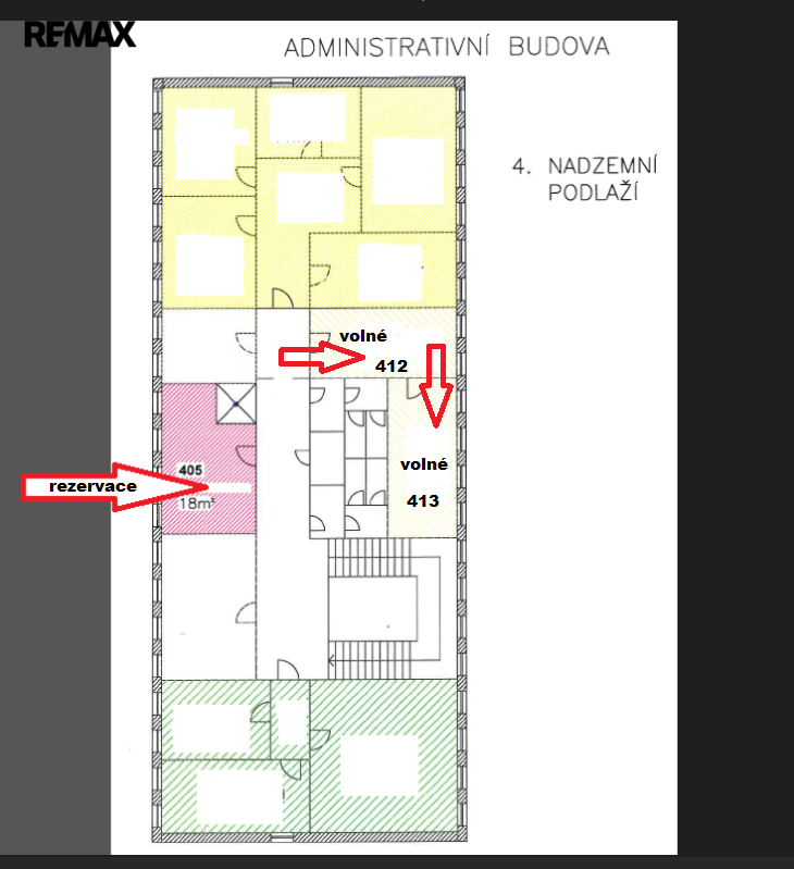 K pronájmu nabízíme průchozí kancelář ve 4. NP č. 412 a 413 o celkové výměře 36 m2.