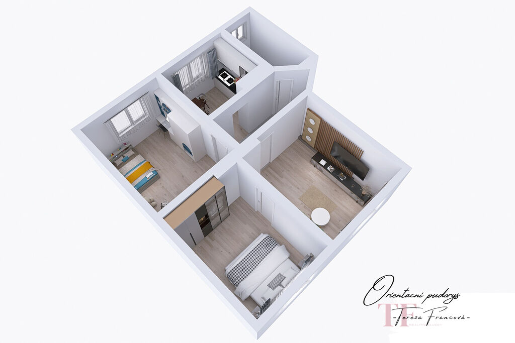 Součástí prodeje je veškerý nábytek, který vidíte na fotografiích, což znamená možnost okamžitého nastěhování nebo pronájmu bez dalších investic. K bytu náleží velký sklep o výměře 20 m² a kóje na půdě.