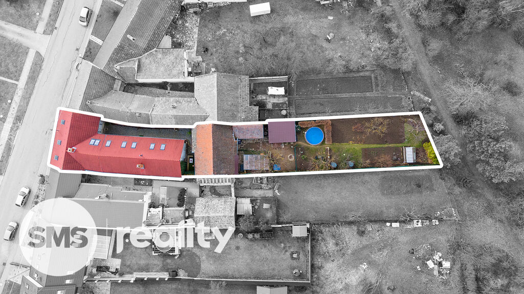 - Stodolu (70 m²) v původním stavu s navazujícími zděnými přístavky