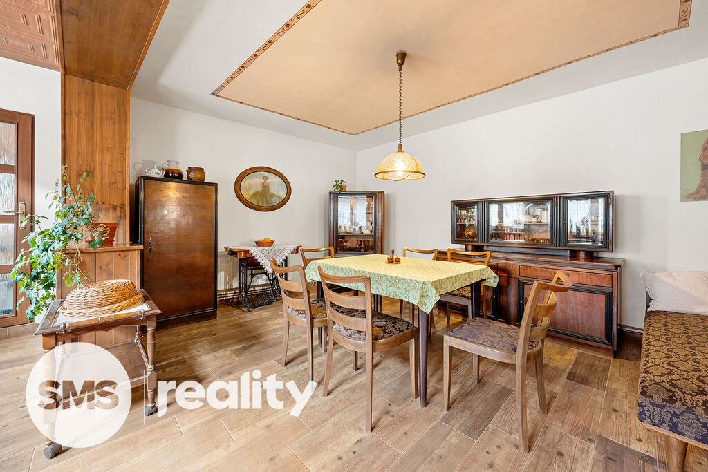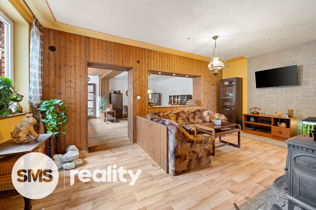 - Hlavní obytná část – prostorný obývací pokoj, kuchyň s jídelnou, ložnice, koupelna, toaleta a praktická komora.