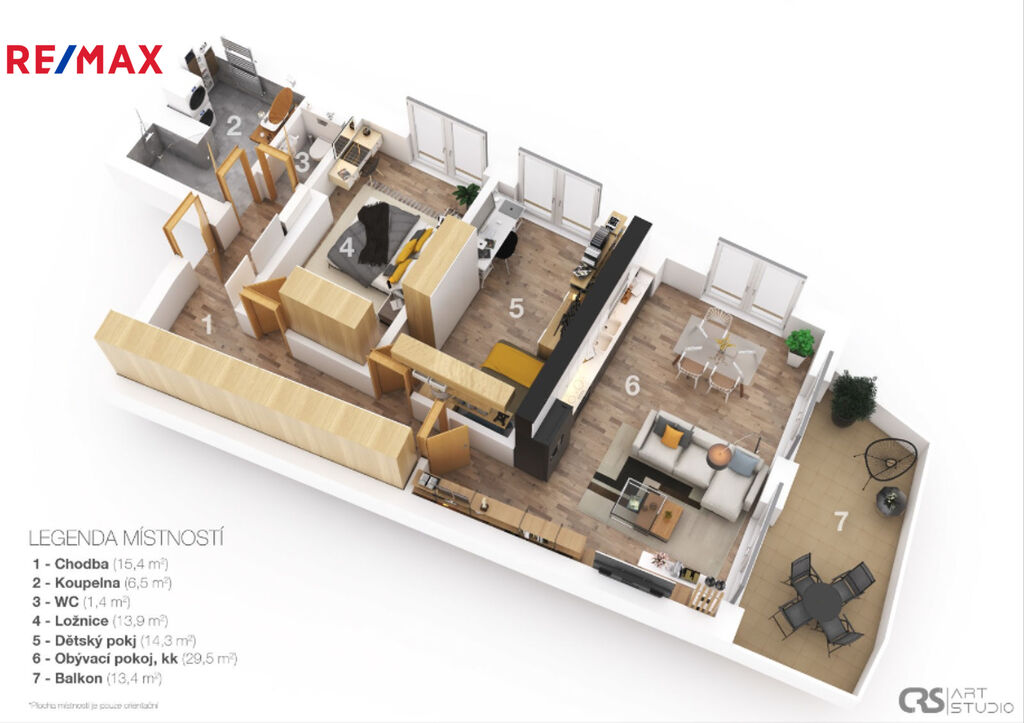 - obývací pokoj s kuchyňským koutem (29,5 m²)