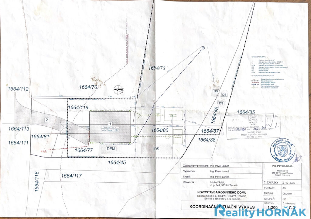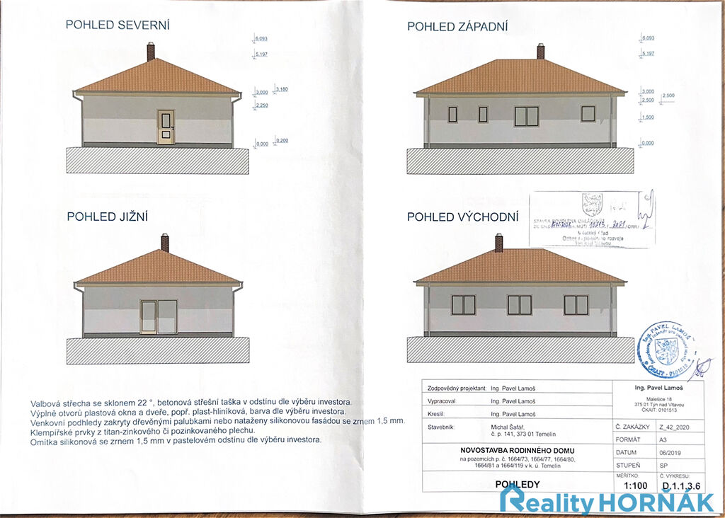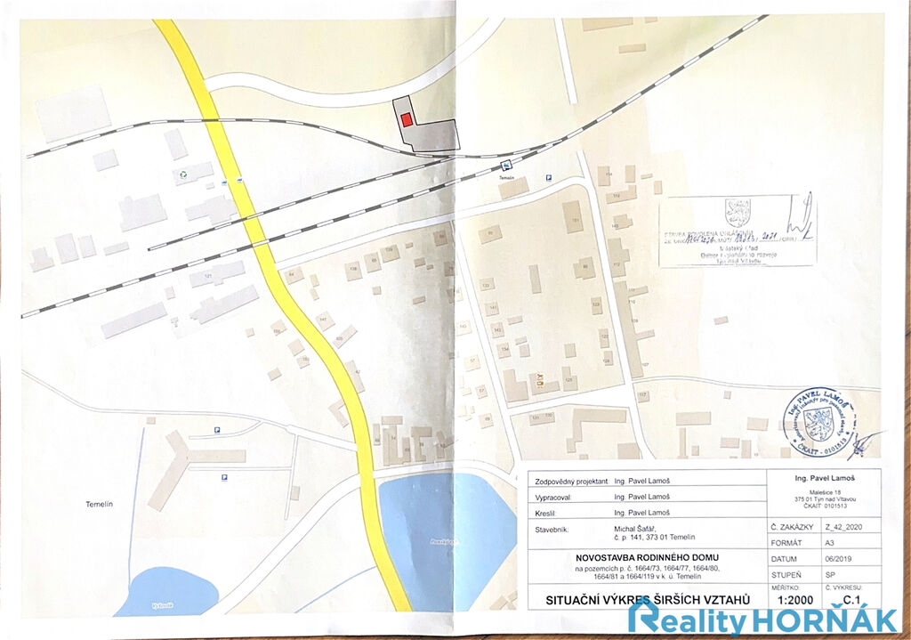 Dovoluji si Vám exkluzivně nabídnout prodej stavební parcely v obci Temelín u Týna nad Vltavou, určené pro výstavbu rodinného domu. Parcela o celkové výměře 1733 m² je položena na severním okraji obce, mezi příjezdovou komunikací (silnice III. třídy číslo 1411) a železniční tratí. Majitel zde hodlal vystavět stavět rodinný dům, na který je zpracována projektová dokumentace a vydáno stavební povolení. Rodinný dům je navržen jako samostatně stojící, nepodsklepený, jednopodlažní objekt obdélníkového půdorysu o rozměru 11,3 x 8,5 m o dispozici 4+KK se sociálním zázemím. Pakliže by parametry navrženého rodinného domu zájemci nevyhovovaly, lze je ve spolupráci se stavebním úřadem řešit změnou stavby před dokončením.