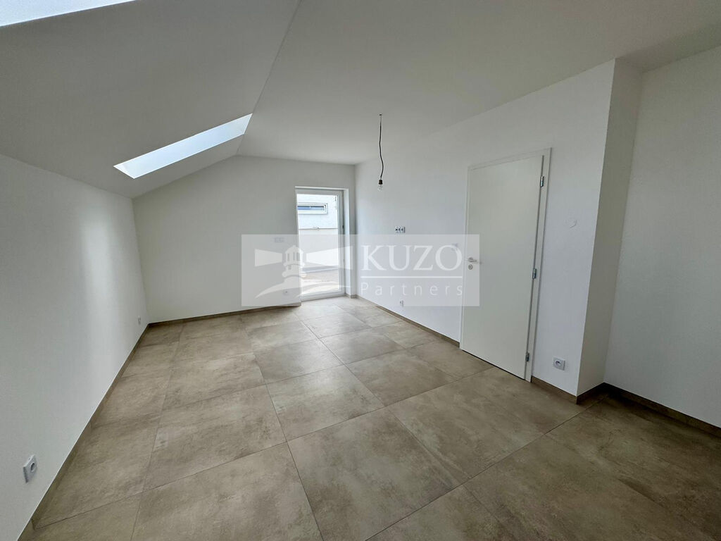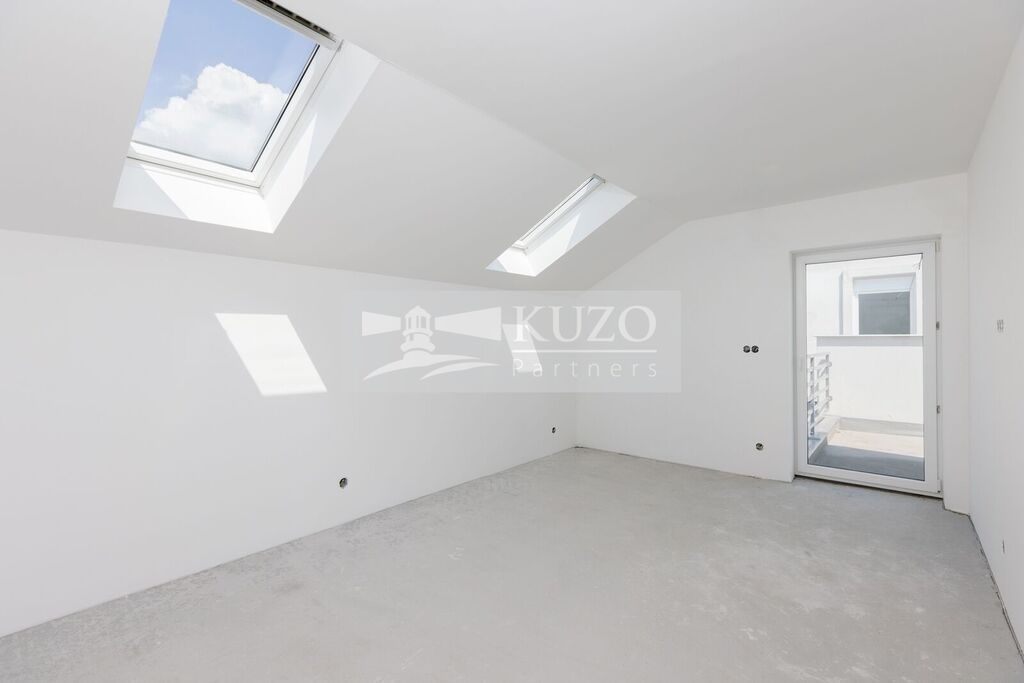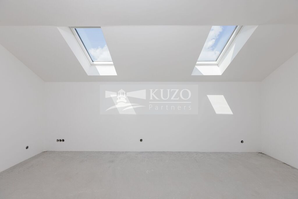 Po schodišti do prvního patra, jsou dva samostatné pokoje o výměře přes 10 m² a ložnice s téměř 20 m², koupelna s vanou a toaletou, dále navíc zmiňovaná prostorná terasa o užitné ploše 29 m².