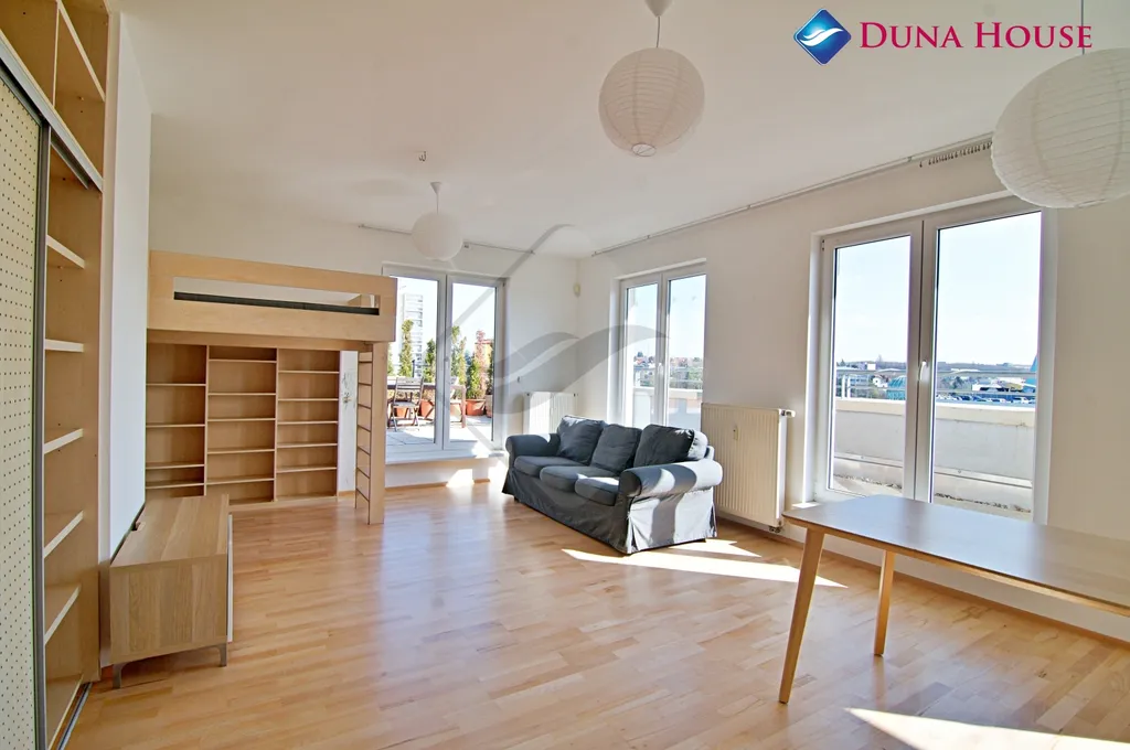 K pronájmu nabízíme prostorný byt s velkorysou terasou o výměře 100 m² v šestém patře bytového domu na Praze 10 s vlastním garážovým stáním.