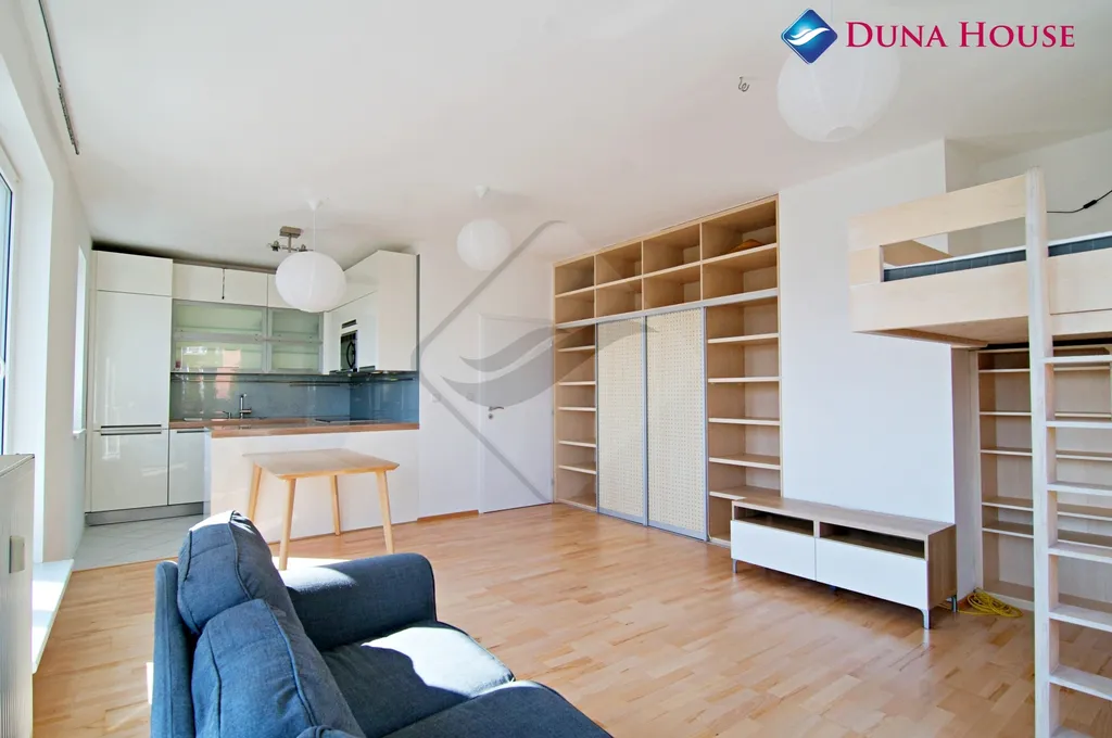 Tento byt nabízí rozměrný obývací pokoj s vybaveným kuchyňským koutem. Pokoj je orientován na sever a na východ. Je zde dostatek místa pro jídelní stůl, zónu pro odpočinek s pohovkou a konferenčním stolkem. Součástí vybavení vestavěná skříň a knihovna. Kuchyňský kout je šikovně oddělen od obývací části a je vybaven varnou deskou, troubou, mikrovlnou troubou a myčkou. Dále je zde k dispozici oddělený pokoj orientovaný na východ a prostorná koupelna s vanou a žebřinovým topením. Do všech těchto místností se dostanete ze vstupní předsíně, která poskytuje notné množství úložného prostoru ve formě dvou velkých vestavěných skříní. Byt je ve velice dobrém udržovaném stavu, nově jsou zde instalovány dveře se zárubněmi a byly revitalizovány dřevěné plovoucí podlahy. Součástí nájmu je také garážové stání v suterénu domu.