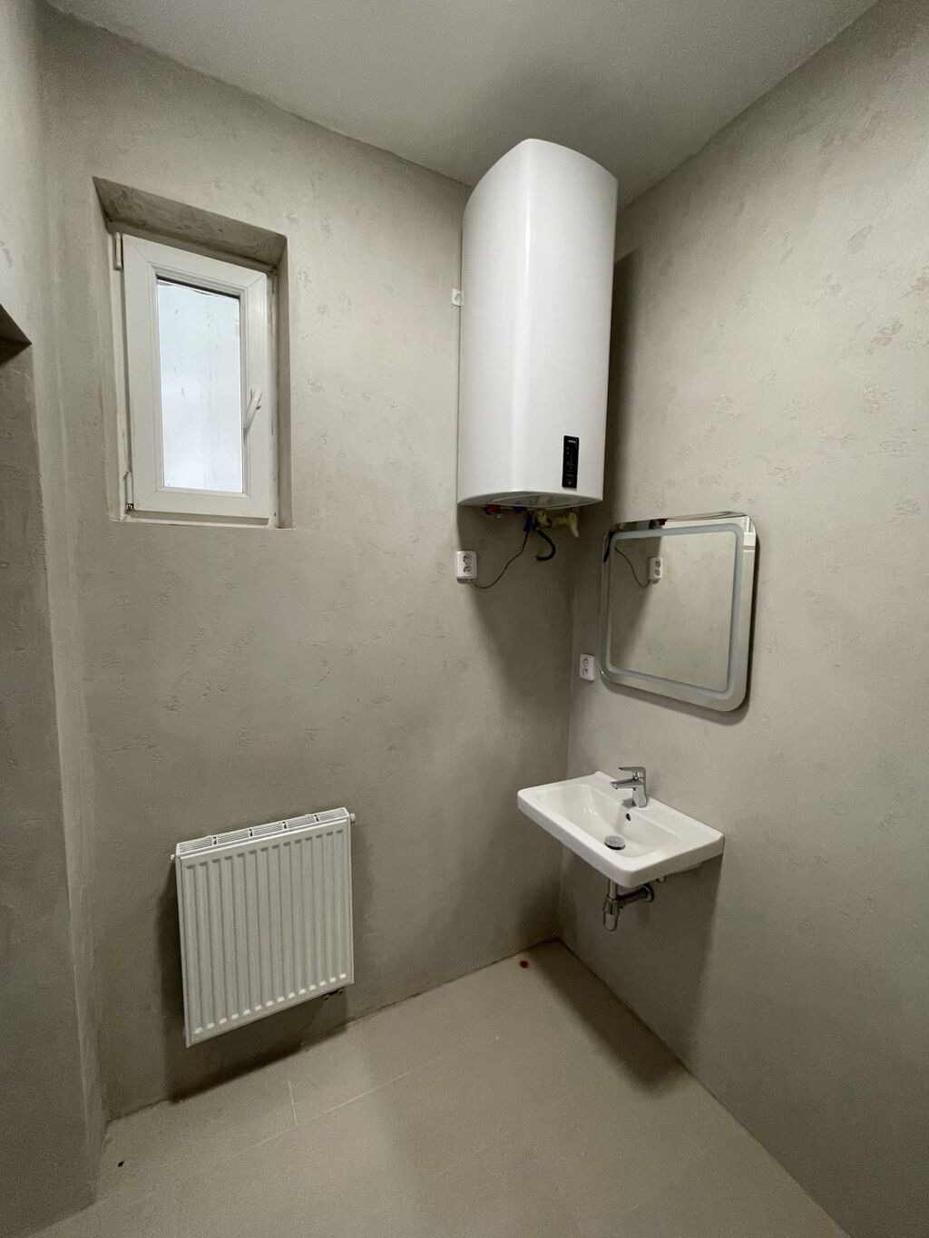 Prostor se skládá z předsíně, koupelny s WC, ložnice a pokoje s kuchyňským koutem. V pokojích je položeno nové lino, v koupelně dlažba. Stěny koupelny jsou dokončeny v moderní betonové stěrce, dále je zde umyvadlo a příprava pro pračku, doplněn bude sprchový kout. Okna v hlavním pokoji jsou situována na jihozápad, díky tomu je byt krásně světlý a slunný po velkou část dne, v ložnici naopak na severovýchod. Na všech oknech jsou instalovány vnitřní žaluzie, takže si sluneční svit můžete regulovat dle Vašich potřeb.