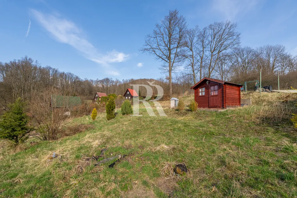 Na pozemku se aktuálně nachází menší dřevěná chatka, několik vzrostlých stromů a keřů, které dotvářejí příjemnou atmosféru tohoto místa.