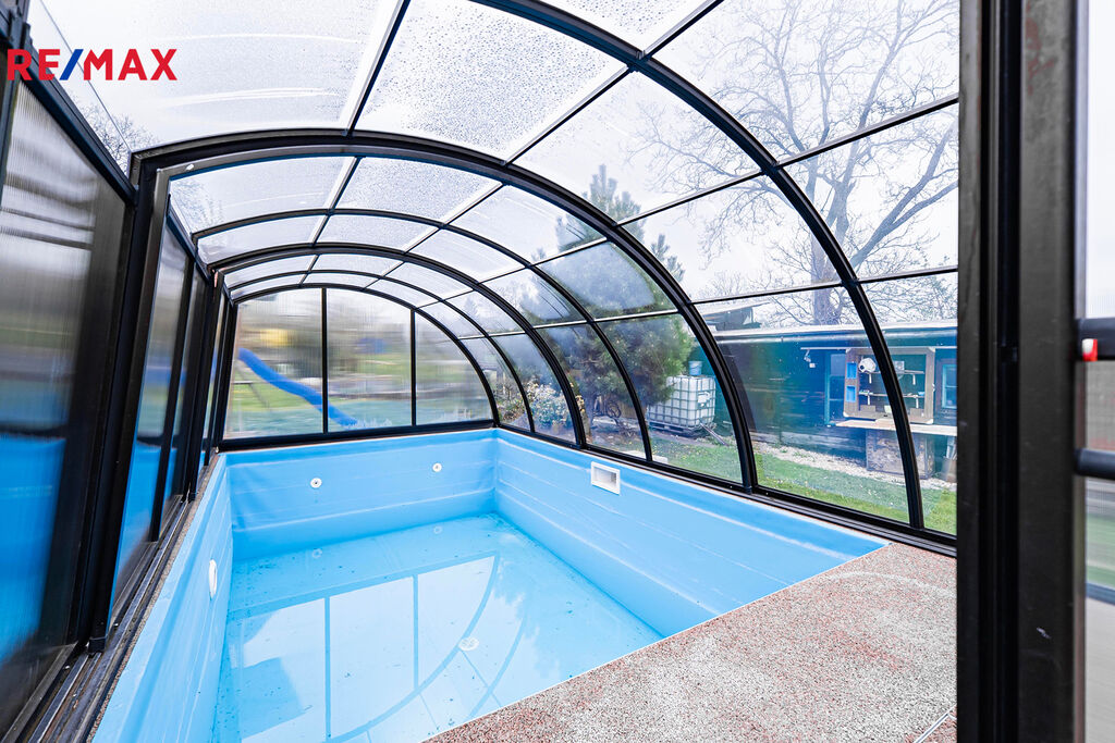 Na zahradu o velikosti 331 m² navazuje další pozemek o výměře 1 097 m², který je v současnosti veden jako stavební. Tento pozemek bude v průběhu prodeje rozdělen geometrickým plánem a součástí převodu bude pouze jeho část o výměře 297 m², na níž se nachází krytý bazén, zastřešené posezení a menší hřiště. Tato část již nebude nadále vedena jako stavební a bude určena pouze k rekreačnímu nebo zahradnímu využití. Zbývajících cca 800 m² nebude součástí prodeje.