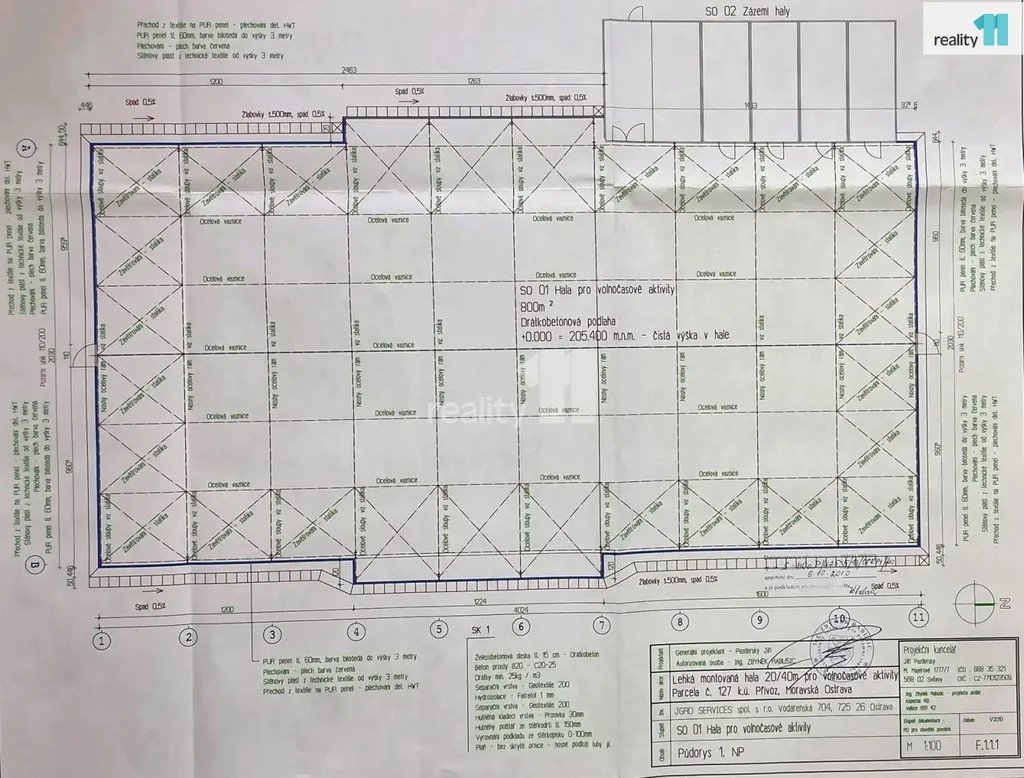 Vysoká nosnost podlahy: 3 t/m² – i pro těžké stroje a skladování.