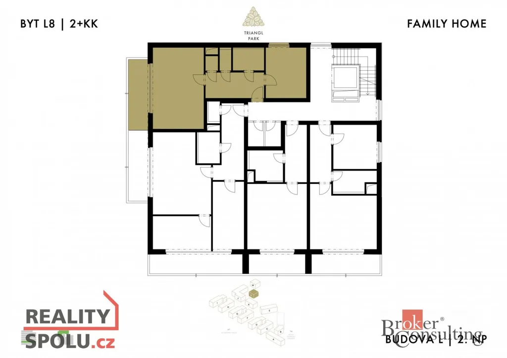 Na prodej zcela nový byt ve výstavbě o dispozici 2+kk s balkonem ve druhém podlaží jedinečného projektu Triangl Park Plzeň. Bytová jednotka je v rámci 3. etapy projektu umístěna v budově K a nabízí výhled do zeleně mezi domy.