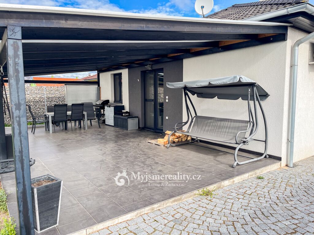 V zastoupení majitele Vám nabízíme na prodej rodinný dům v obci Chvalovice o dispozici 4+kk se samostatnou garáží a prostorem pro podnikání. Dům je umístěný na rovinatém pozemku o celkové výměře 1125 m2. Jedná se o přízemní stavbu o dispozici 4+kk, která nabízí tři pokoje, kuchyň spojenou s obývacím pokojem, koupelnu s vanou, sprchovým koutem, toaletou a samostatnou toaletu. Z obývacího pokoje je vstup na prostornou zastřešenou terasu.