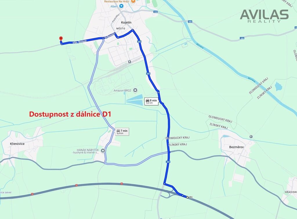 Vzdálenost od dálnice D1 je pouhých 12 km, přičemž napojení je re