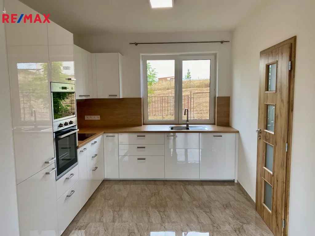 Bezbariérový zděný dům je kompletně dokončen a vybaven kuchyňskou linkou se spotřebiči. K dispozici je i spíž. Je kolaudován jako bungalov o dispozici 4+kk a velkou příjemnou 25 m2 velkou terasou s výhledem do daleké zeleně. Užitná plocha obytné části je 107 m2 + 25 m2 užitného prostoru na půdě. Dispozice je praktická - na světlý obývací pokoj s kuchyňským koutem o velikosti 37 m2 navazuje terasa se vstupem dále do zahrady. Tři samostatné neprůchozí ložnice mají vstup z centrální chodby domu a dále je zde koupelna s vanou a WC, technická místnost, druhé WC se sprchou, chodba, předsíň.