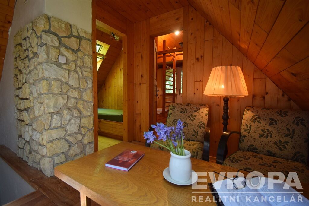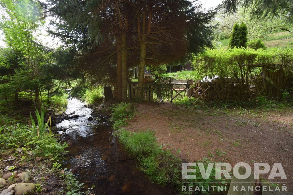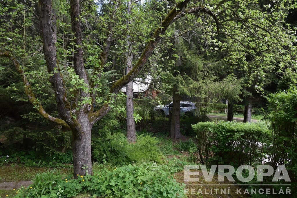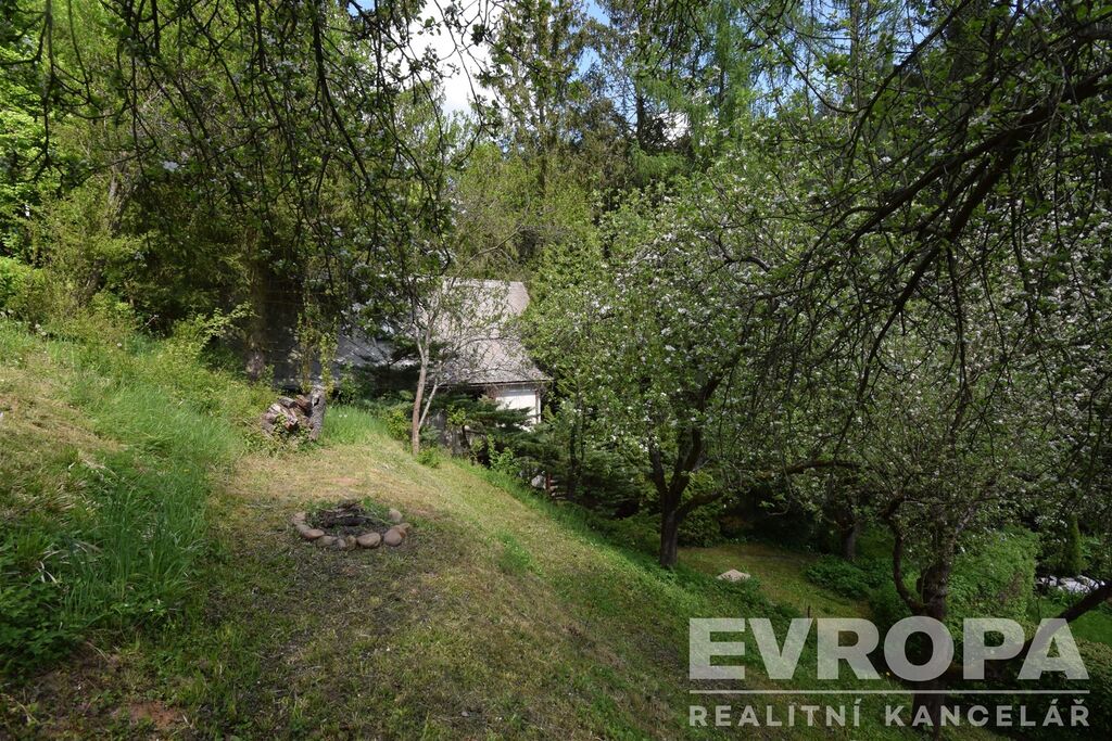 Chata stojí na terasovitém pozemku o výměře 678 m2. Na pozemku s travním porostem je mimo jehličnanů také 8 jabloní, z toho 5 starších a 3 nově vysázené. Na pozemku nalezneme i místo, kde rostou lesní jahody. Tento útulný a romantický pozemek nabízí dostatek úžasných zákoutí pro zasloužené chvíle odpočinku a relaxace, které ještě umocňuje zurčící potok tekoucí pár metrů od pozemku.