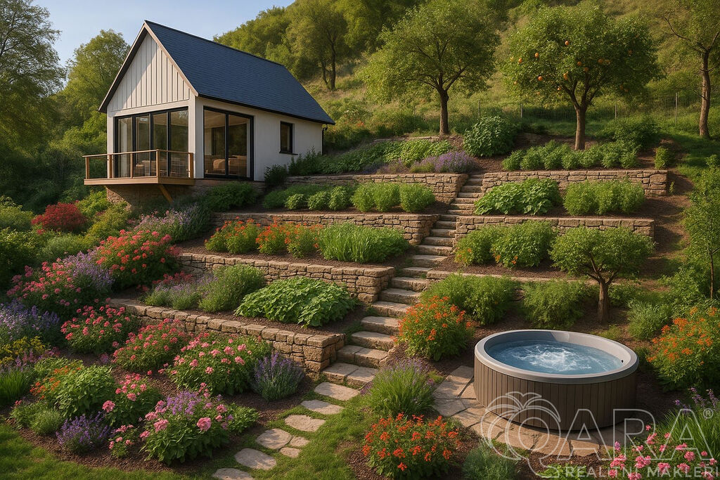 Na pozemku je možné postavit dvoupodlažní budovu se sedlovou střechou na zastavitelné ploše o výměře 33 m². Projekt může zahrnovat také terasu či zimní zahradu, což umožní ještě více využít přírodní charakter místa a výhled do údolí. Přiložené obrázky nemovitosti jsou pouze vizualizací.