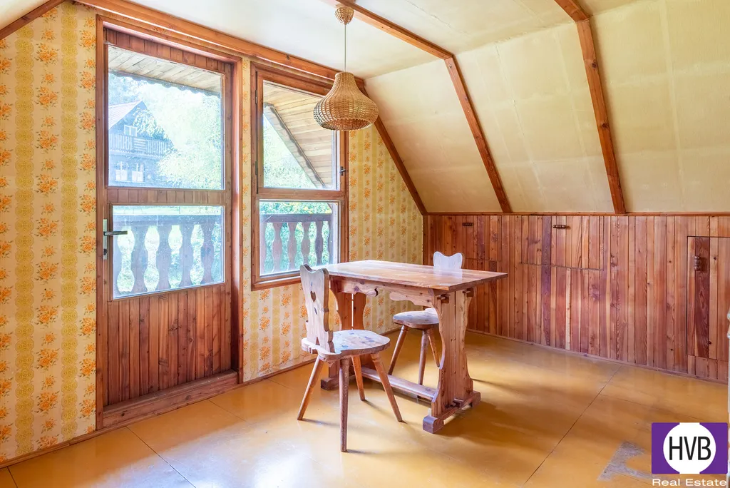 Nabízíme k prodeji zděnou chatu na pozemku 457m2 v obci Záhoří okr. Plzeň-jih. Cihlová chata o zastavěné ploše 44 m² na pozemku o rozloze 457 m² s obytným podkrovým, která ma pod krytým zádveřím chladný sklep. Vytápění je zajišťováno krbem a kamny jak v obytných pokojích, tak v kuchyni. Chata je napojena na elektřinu a vlastní septik.