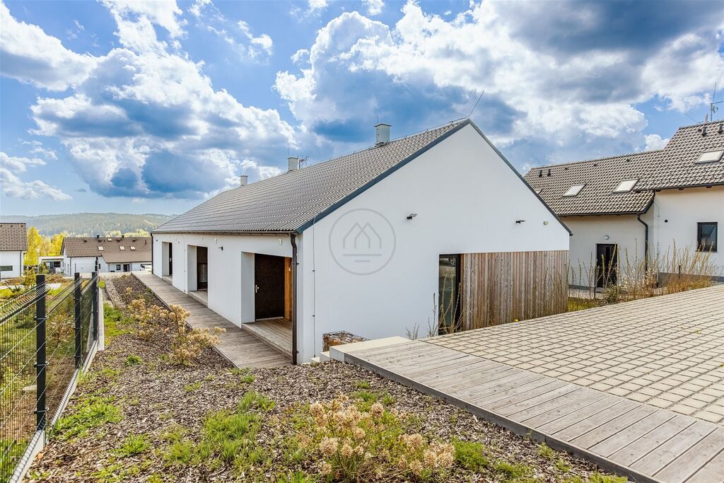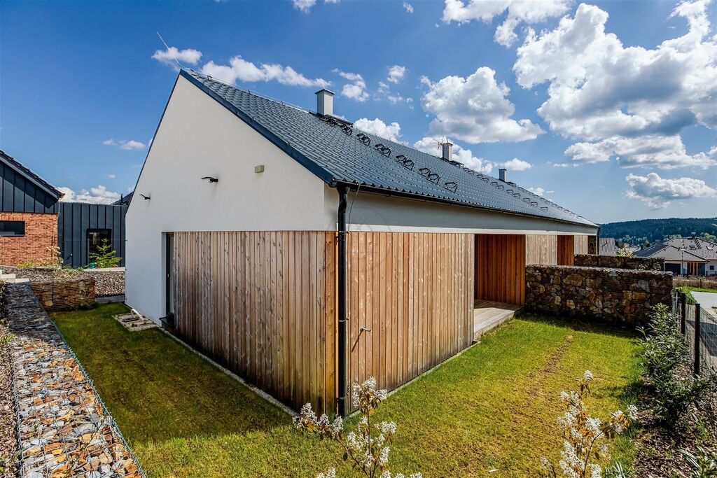 Apartmán je součástí jednopodlažní nepodsklepené dřevostavby se sedlovou střechou a třemi bytovými jednotkami. Objekt je zateplený tepelnou izolací a fasádním polystyrenem dle norem ČSN a minerální omítkou v kombinaci se Sibiřském modřínem. Kolaudace leden 2023. Vytápění bytu je řešeno vlastním elektrokotlem PROTHERM 6 kW napojeným na podlahové vytápění, dále jsou provedeny veškeré rozvody pro případné vytápění tepelným čerpadlem. V obývacím pokoji je připravený komín na napojení krbových kamen. K jednotce patří podíl na společných prostorech zahrady, která má plochu 571 m². K prodeji je také vedlejší jednotka "C".