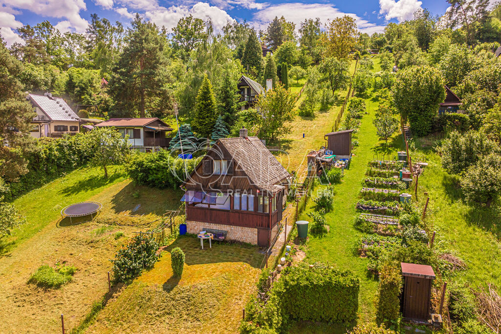Samotná chata o ploše 56 m2 je postavená na zděné podezdívce a kombinuje dřevěný a zděný charakter. Díky své dispozici nabízí pohodlí i pro delší pobyt. Kuchyň s vybavením navazuje na obývací pokoj s kamny na tuhá paliva, které v jarních a podzimních měsících vytvoří nejen teplo, ale i atmosféru. V horním patře se pohodlně vyspí čtyři lidé – ideální pro rodinu, ale i pro přátele, kteří za Vámi mohou přijet.