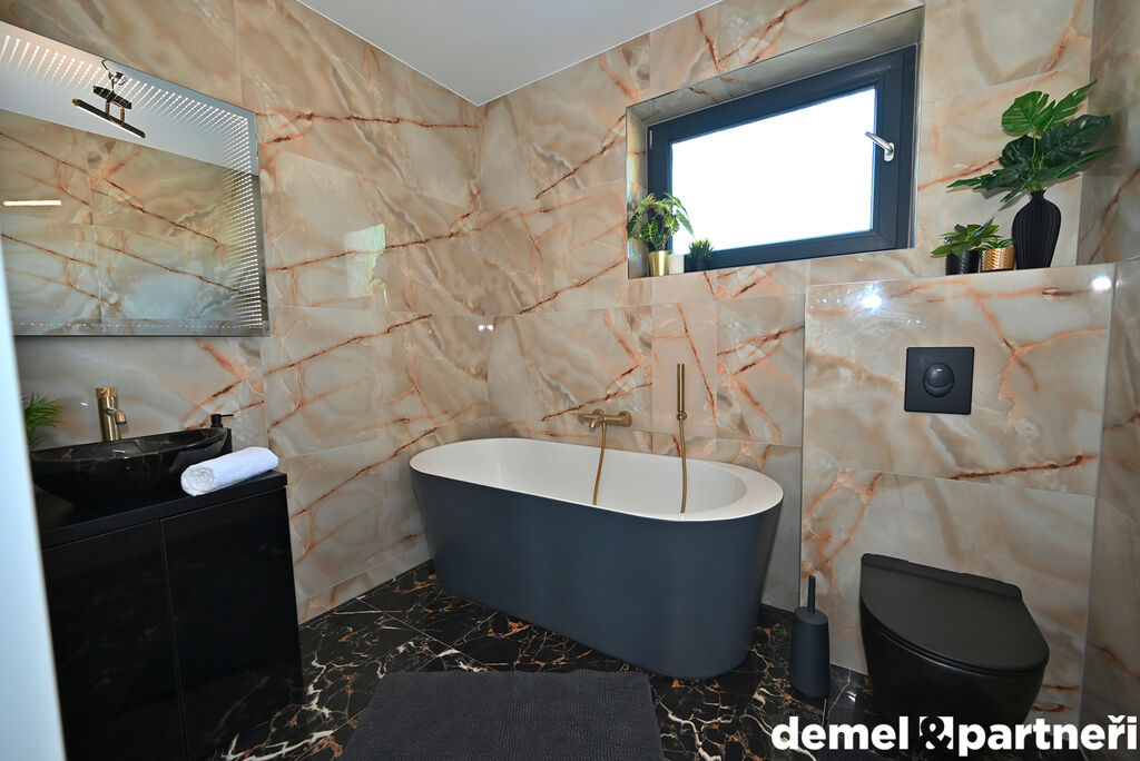 Tenhle zděný rodinný dům s užitnou podlahovou plochou 124 m², je aktuálně před kolaudací a čeká na své první obyvatele, kteří z něj vytvoří domov, nebo dokonalé místo k relaxaci. Po otevření vstupních dveří na tebe čeká v přízemí luxusní koupelna s vanou a záchodem, technická místnost, útulný obývací pokoj s krbovými kamny a prostorná kuchyně vybavená všemi spotřebiči. Otevřeným schodištěm se pak dostaneš do podkroví, kde na tebe čekají tři neprůchozí ložnice a dvě šatny. Starosti se záchodem řešit nemusíš, protože ho tu najdeš taky.