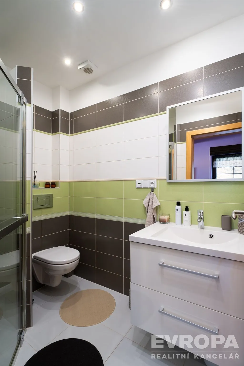 Dvě koupelny s vanou, sprchovým koutem a toaletou