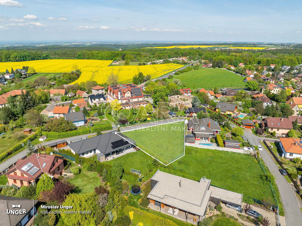 Pozemek pro rodinu, která nechce dělat kompromisy – centrum Vyžlovky, 1 040 m², jižní orientace, 11 km od hranice Prahy + architektonická studie rodinného domu