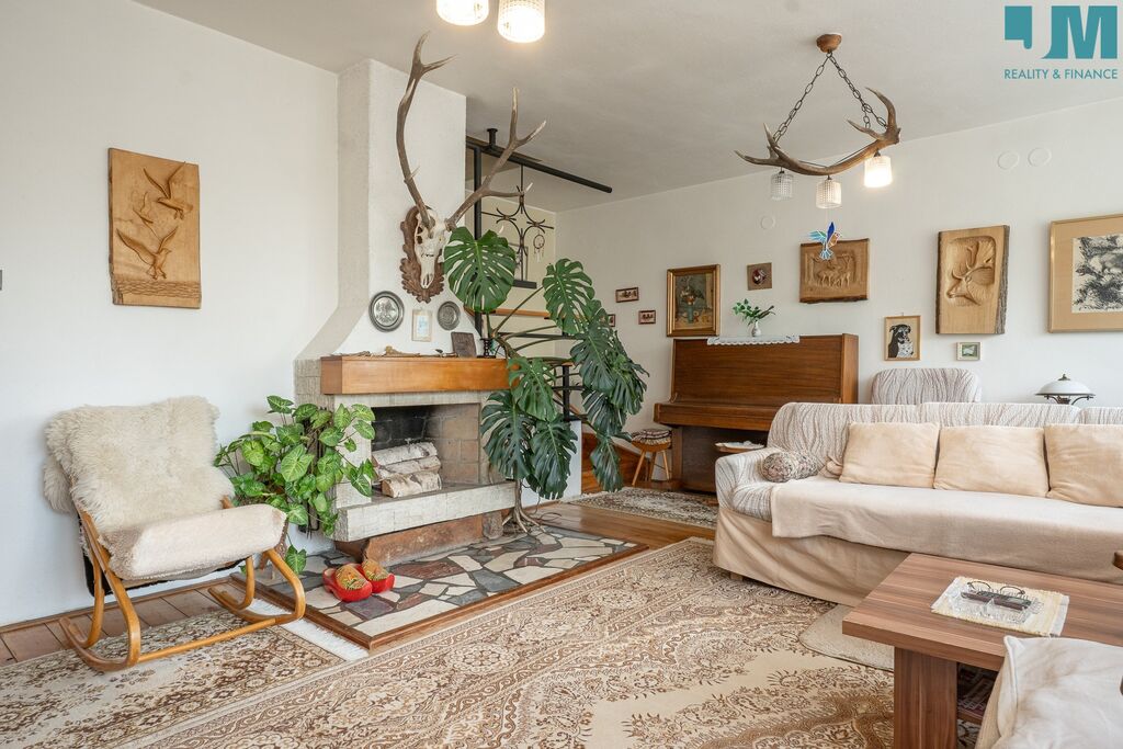 Kuchyně s možností jídelního koutu, praktický prostor pro pračku a umyvadlo – ideální řešení bez nutnosti chodit do koupelny, samostatné WC, prostorný obývací pokoj s krbem, který navodí příjemnou atmosféru během chladných večerů.. z obýváku je také přístup na balkon s výhledem do okolí. Podlaha v okolí krbu je obložena elegantní benátskou dlažbou, která je nejen estetická, ale i praktická.