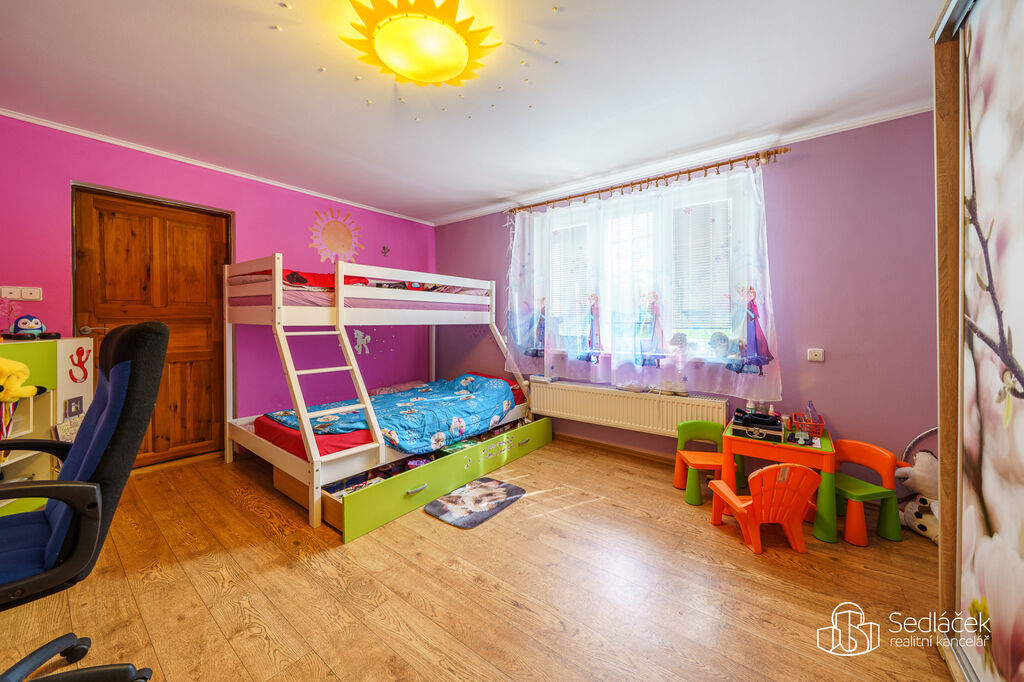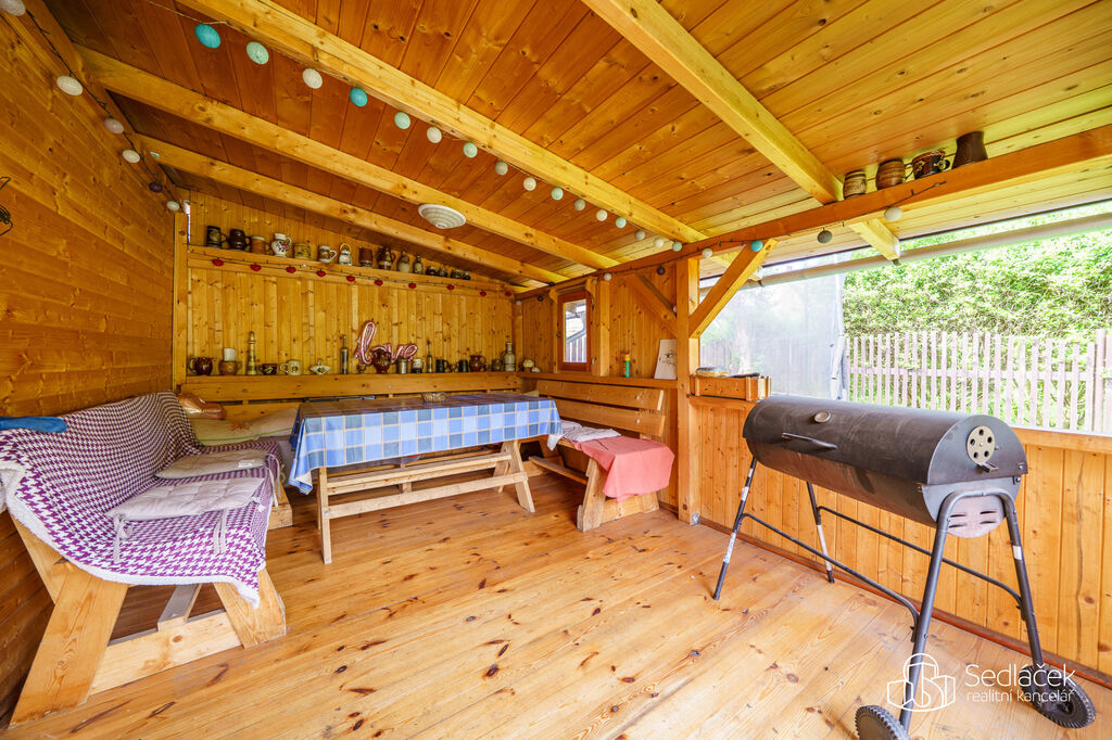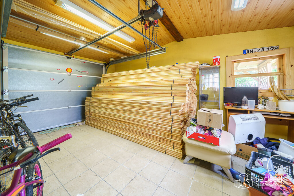 Součástí domu je také samostatný byt 1+1 pro hosty s vlastním vstupem, dvě garáže (jedna zděná, druhá plechová), venkovní pergola a udržovaná zahrada o výměře 529 m², která poskytuje dostatek prostoru pro odpočinek i rodinné posezení.