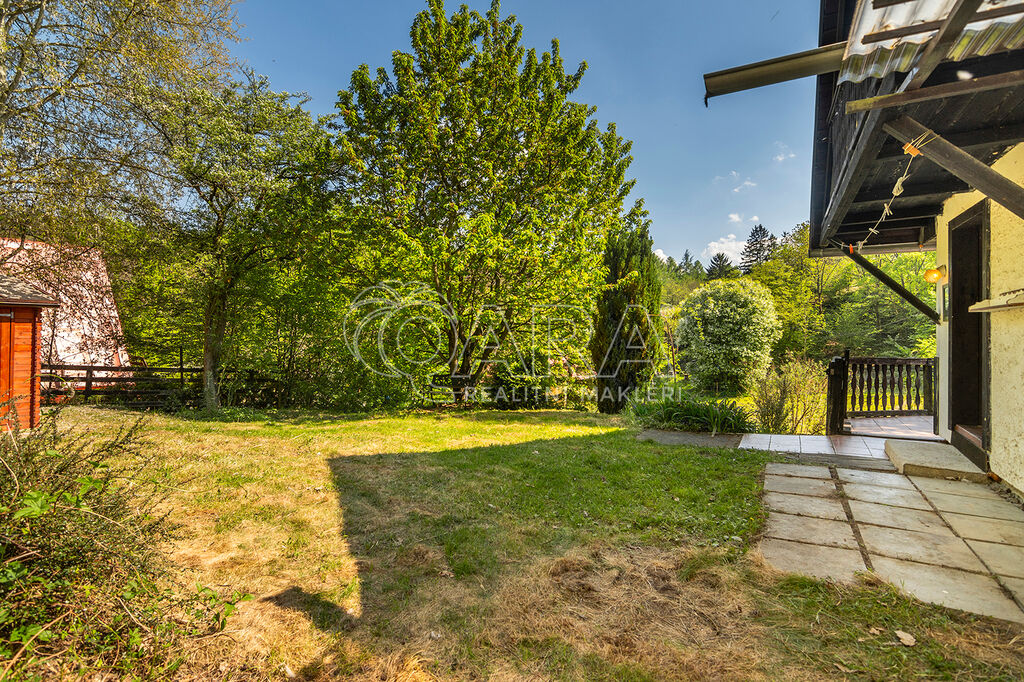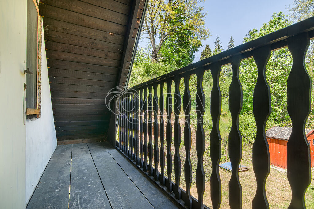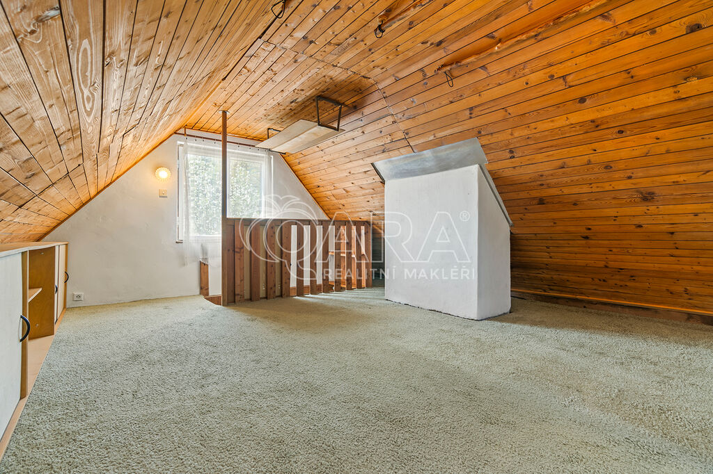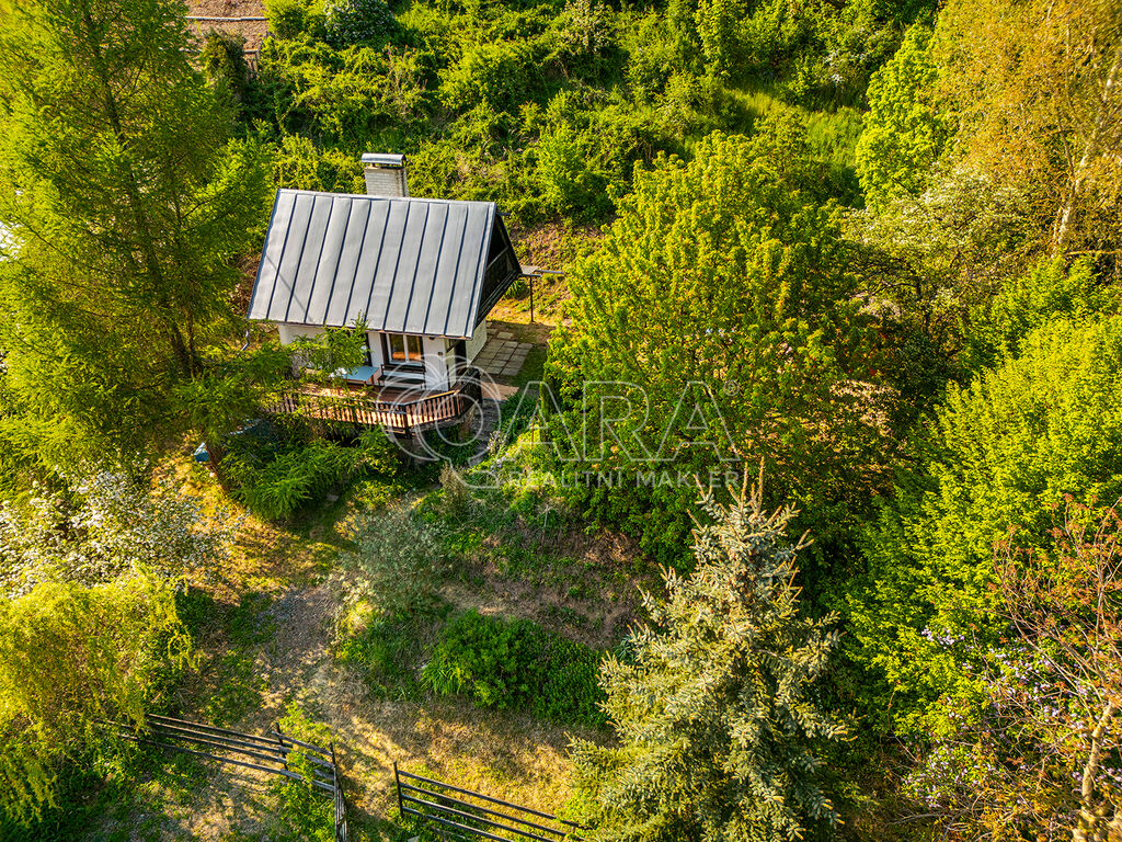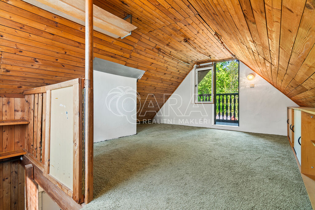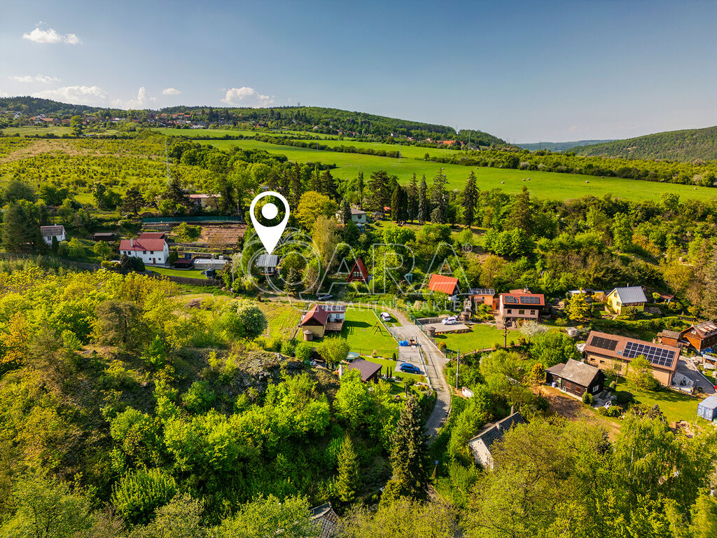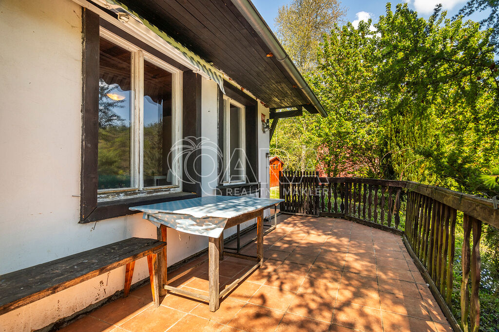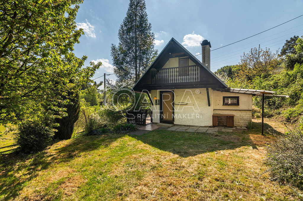 REZERVOVÁNO! Ve výhradním zastoupení majitele nabízíme k prodeji chatu s terasou a sklepem nedaleko Prahy, v krásné lokalitě obce Černolice, v oblasti Za Homolí. Nemovitost je vhodná k rekreaci nebo po případné úpravě i k celoročnímu užívání. Dle aktuálního územního plánu je pozemek určen k výstavbě domu k rodinné rekreaci se zastavitelností pozemku 20 %. Do chaty je přivedena elektřina, na pozemku se nachází vrtaná studna a odpad řešen jímkou. Chata o dvou podlažích má dispozici 2+1 a je kompletně podsklepena. První nadzemní podlaží chaty tvoří pokoj (15 m2), kuchyně (4,5 m2) a toaleta se sprchovým koutem (cca 2 m2). Ve druhém nadzemním podlaží se nachází prostorný pokoj (cca 14 m2) se vstupem na balkon. Z terasy (13,5 m2) se naskýtají volné výhledy do okolí. Vytápění chaty zajišťují kamna na tuhá paliva. Na střeše položena plechová střešní krytina.