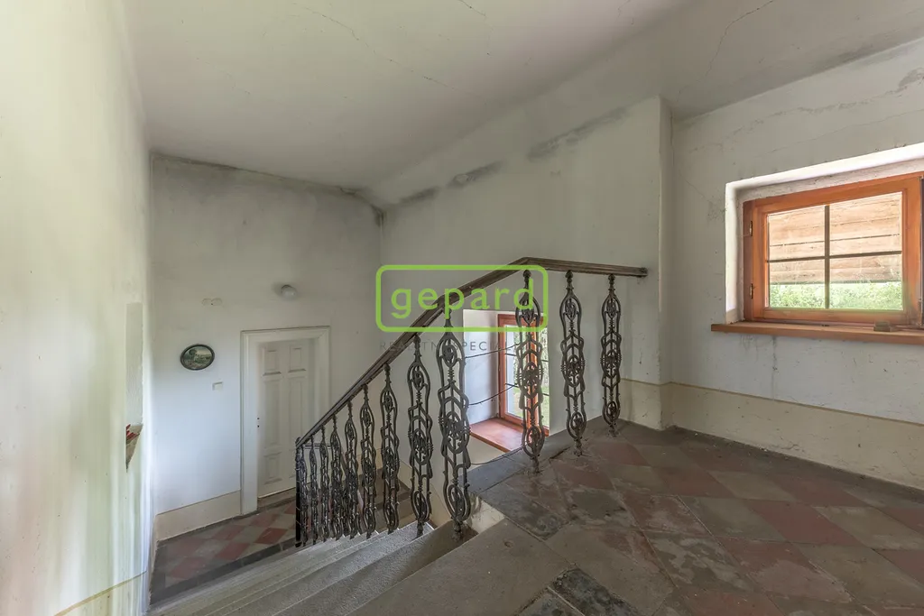 Rodinný dům 4+1 k rekonstrukci – obytná plocha přízemí činí prostorných 173 m². Dům byl postaven kolem roku 1918 na průtočných základech, má dřevěná okna a je částečně podsklepený (60 m² sklep).