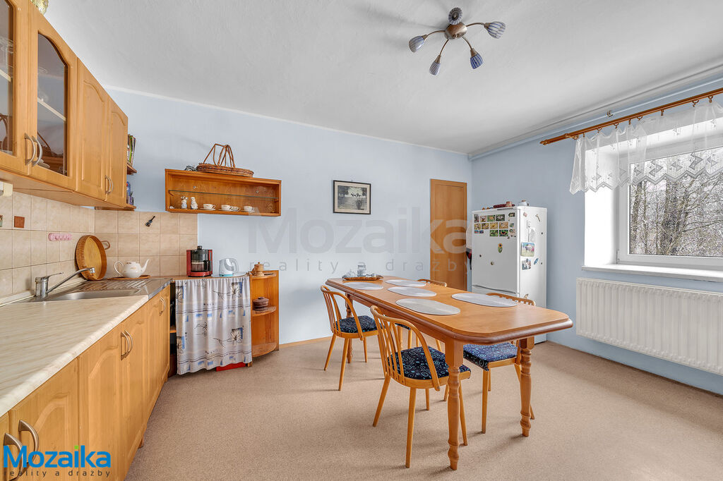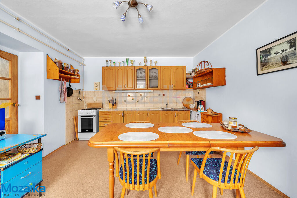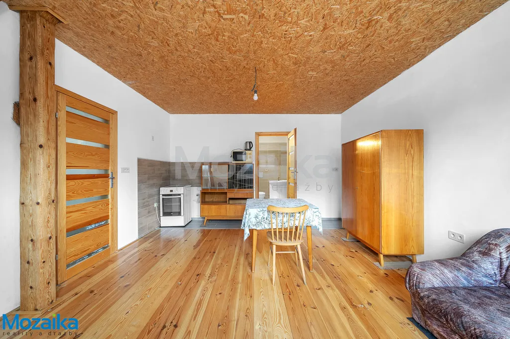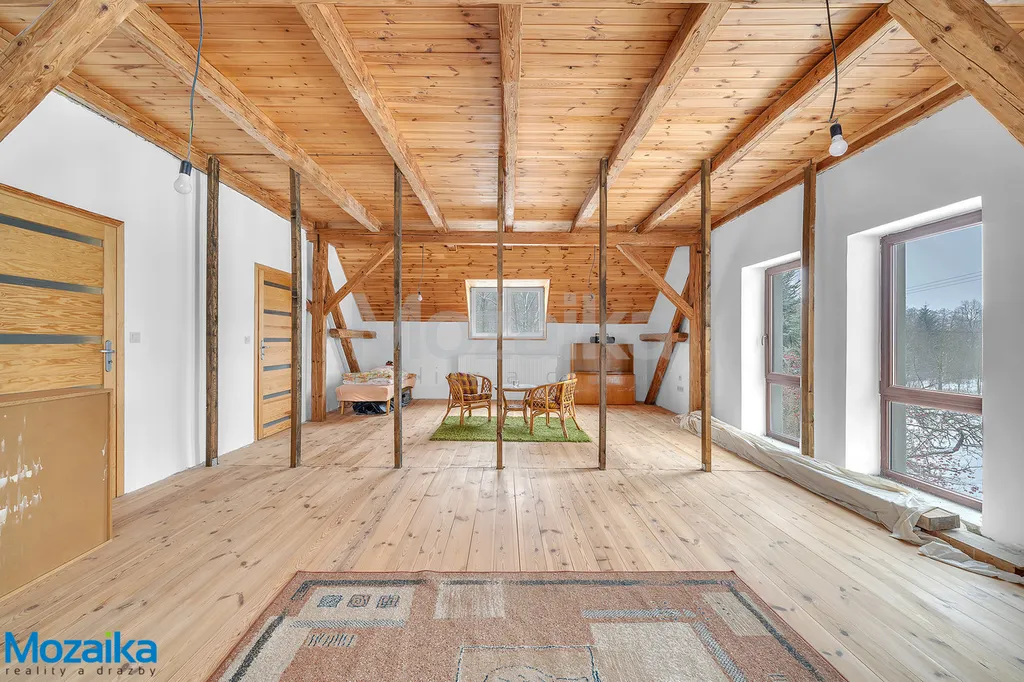V přízemí domu najdete plně funkční byt 2+1, který prošel v roce 2008 kompletní rekonstrukcí včetně nových plastových oken. V roce 2018 byla položena nová střešní krytina Capacco a započala vestavba dalšího obytného prostoru v podkroví. Zde je již hotový jeden apartmán s vlastním sociálním zázemím a kuchyňským koutem. Další velký apartmán (nebo dva pokoje dle vašeho řešení) čeká na dokončení dle vašich představ. Samostatné vstupy umožňují oddělené využívání přízemí a podkroví – ideální pro vícegenerační bydlení nebo ubytování hostů.