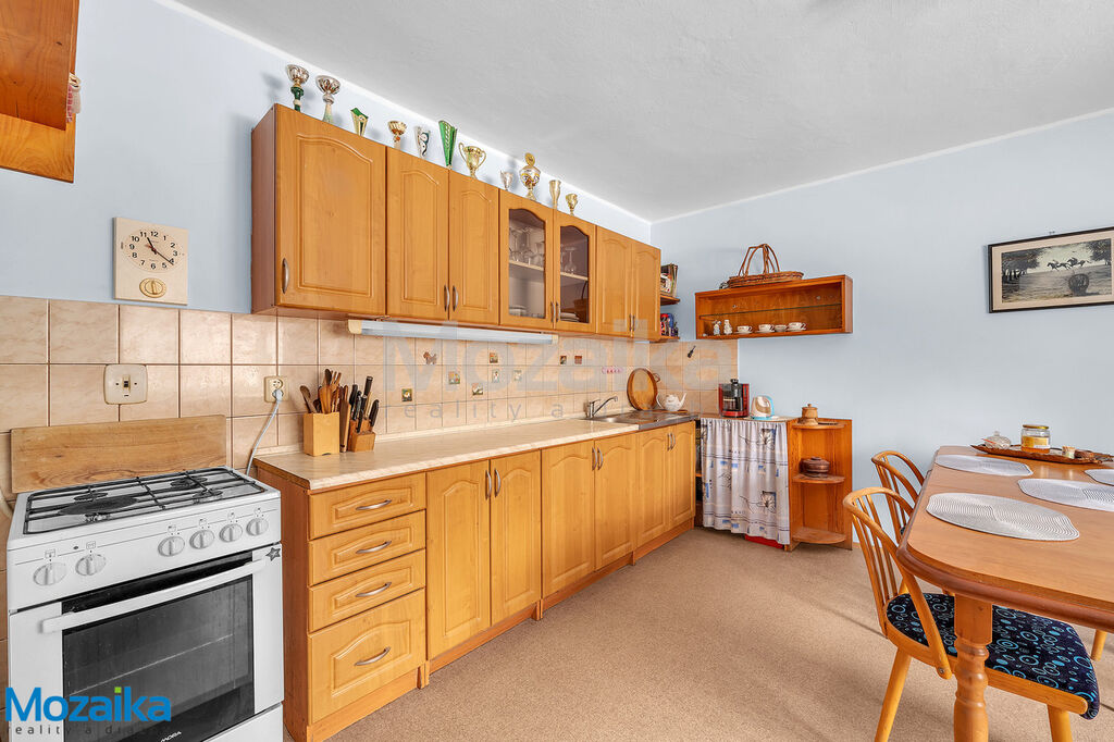 - Ústřední vytápění plynovým kotlem i kotlem na tuhá paliva, kachlová kamna v obývacím pokoji