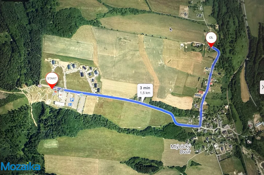 - Celková plocha pozemků: 3 990 m² + 1 873 m² v pronájmu od Pozemkového fondu (možnost odkoupení)