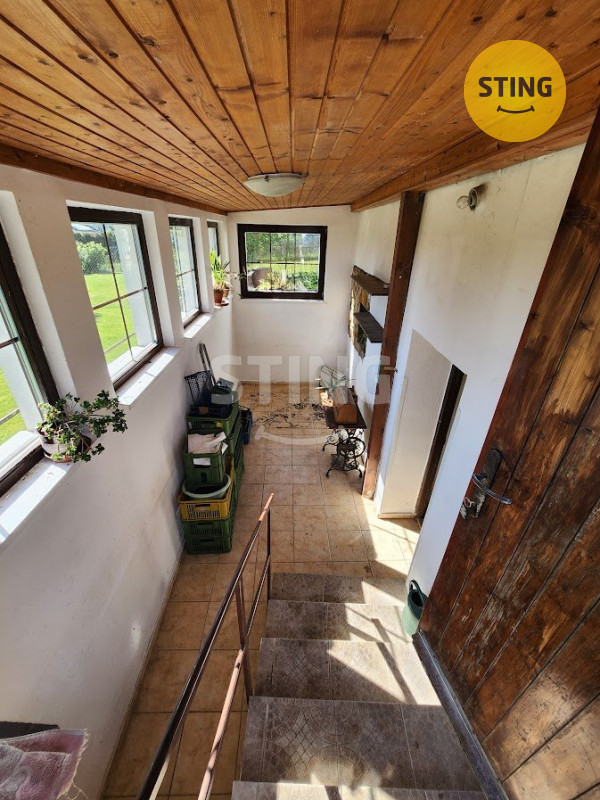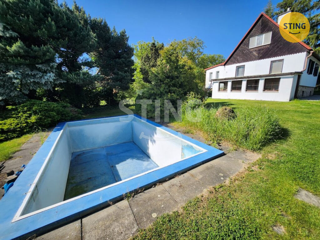 Tento samostatně stojící dům se nachází na krásném pozemku o rozloze 2037 m² a nabízí široké možnosti využití. Pozemek je plně oplocen. Dům je napojen na vodovod, elektřinu a plyn, odpad je řešen pomocí jímky s přepadem. Topení zajišťuje vlastní plynový kotel. Dům je kompletně podsklepen.