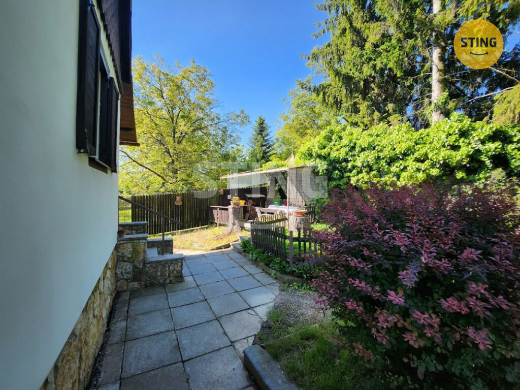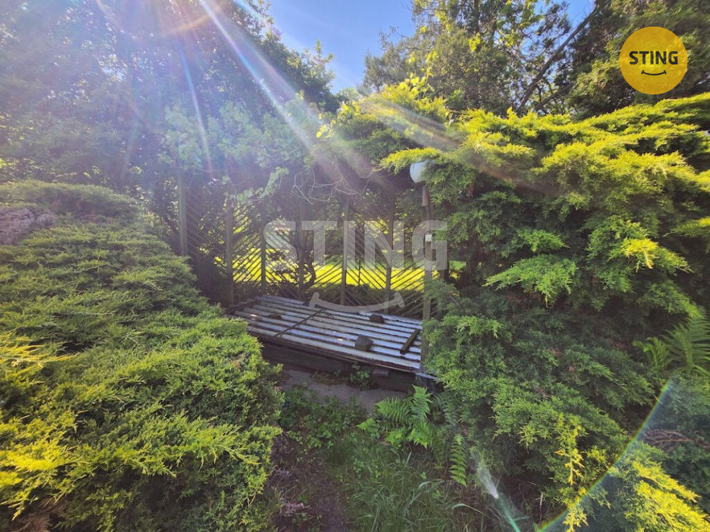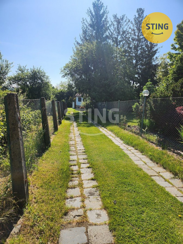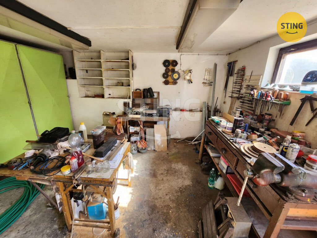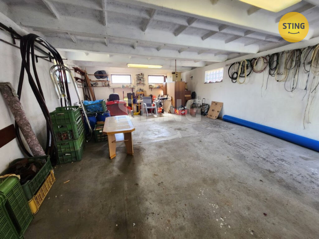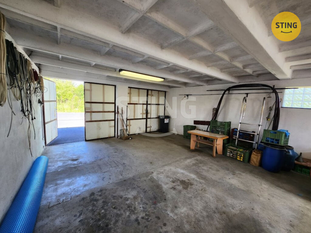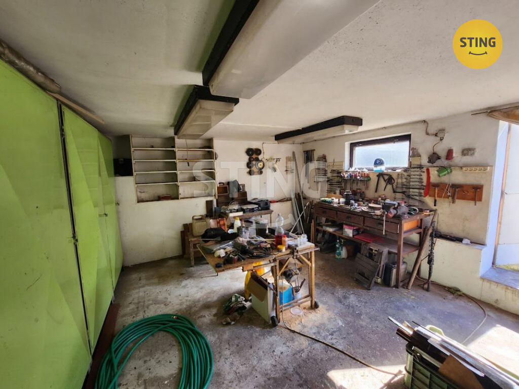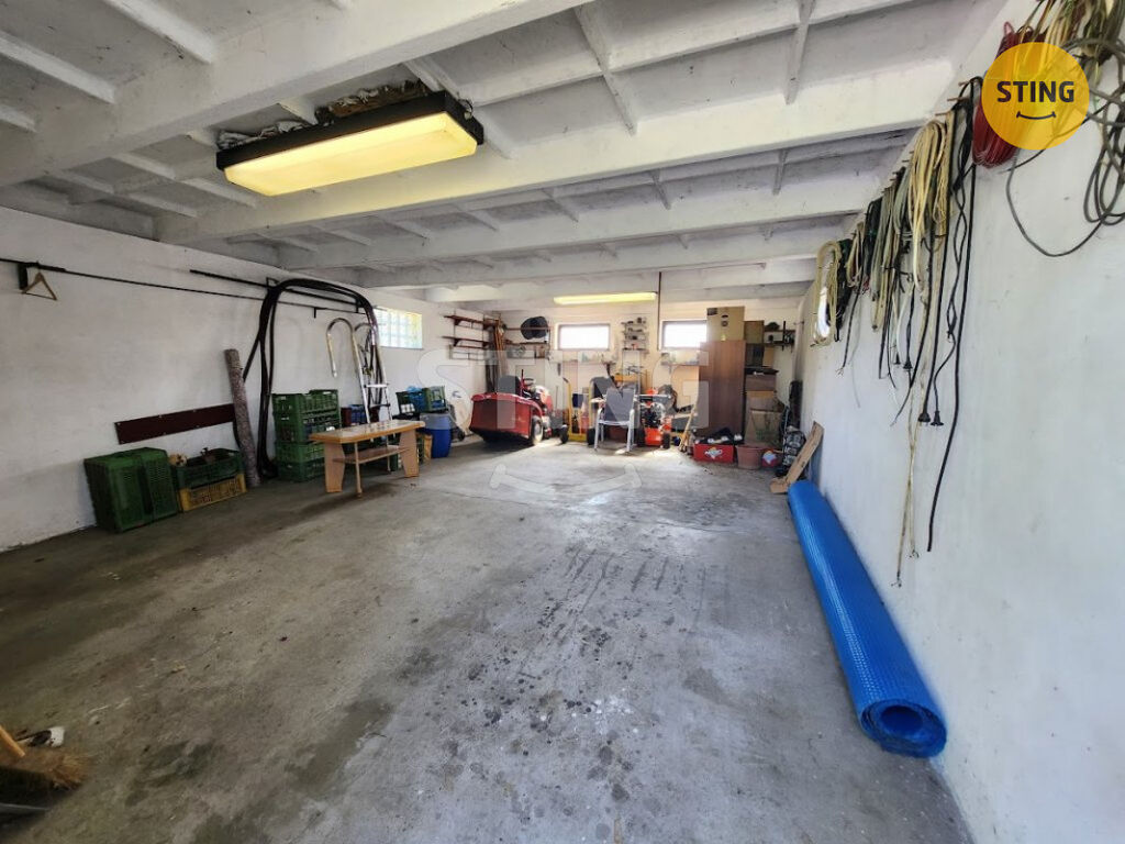 Spodní část pozemku nabízí možnost pěstování ovoce a zeleniny. K dispozici je také bazén. Dále k domu náleží dvojgaráž a dílna.