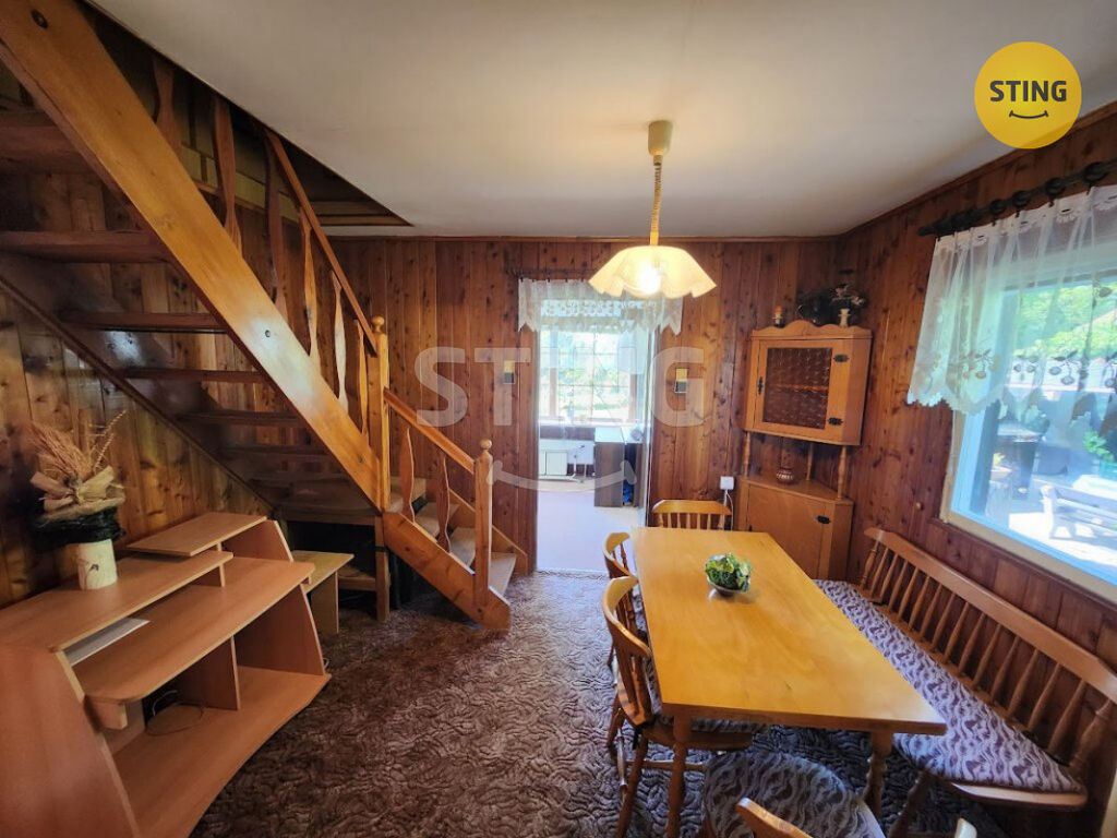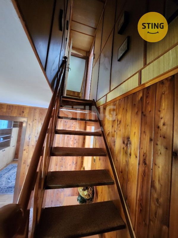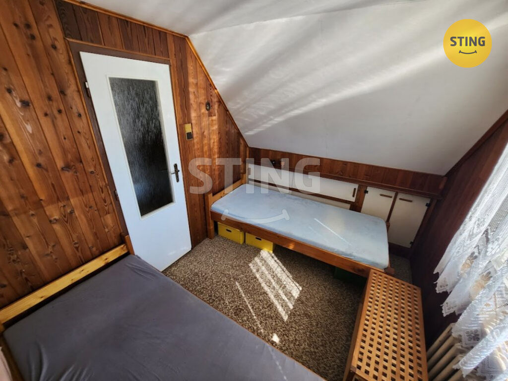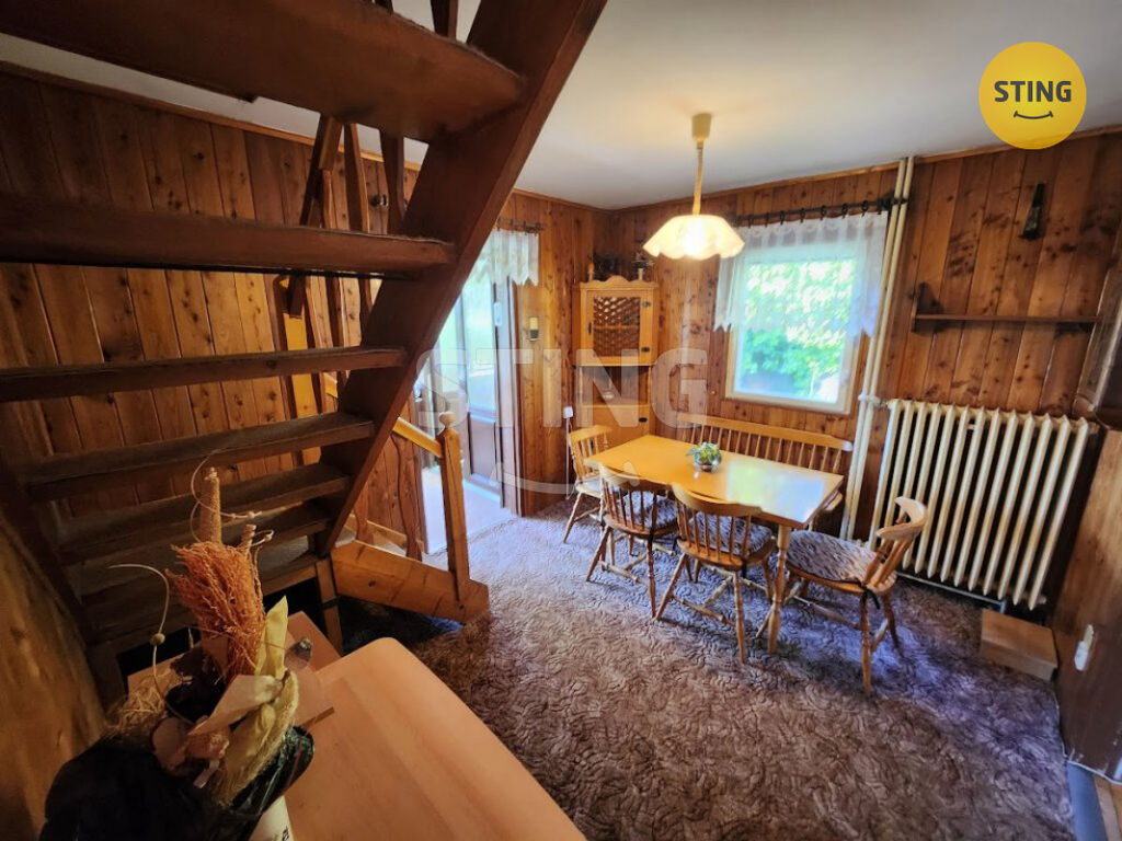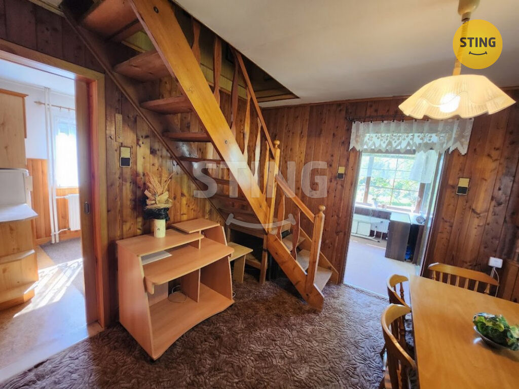 Ze vstupního prostoru se dostanete do obývacích prostor, koupelny se sprchovým koutem a samostatného WC. Z pokoje vedou dveře do kuchyně a obývacího pokoje. Další dvě neprůchozí místnosti jsou k dispozici v podkroví.