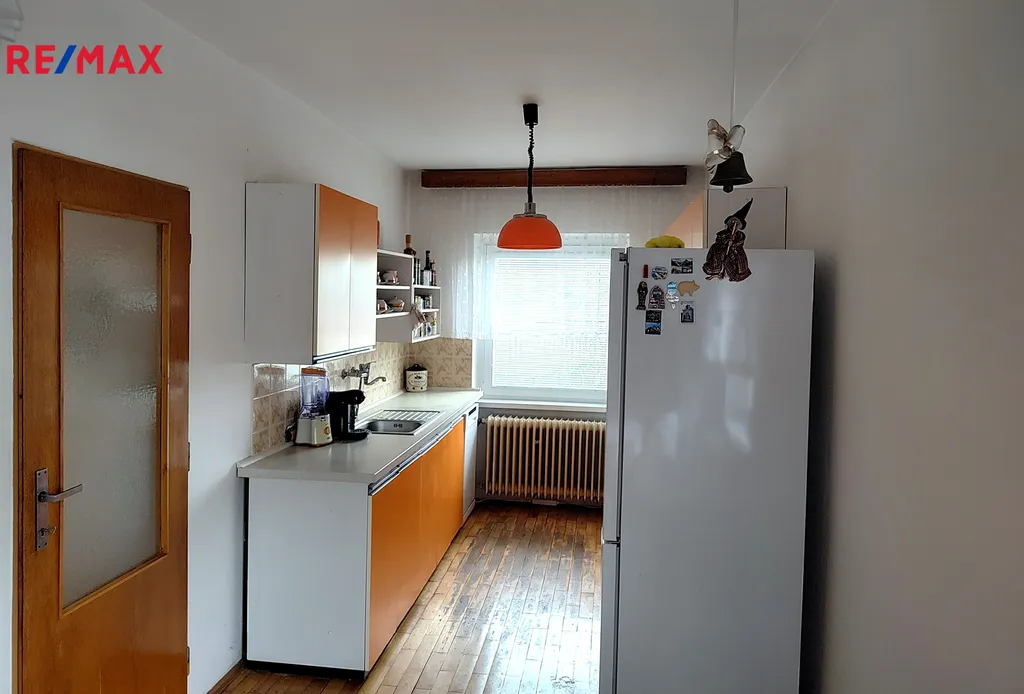 Přízemí : vstupní chodba, kuchyň, dva pokoje, obývací pokoj s krbem a výstupem do zahrady, komora, sociální zázemí ( koupelna, WC )
