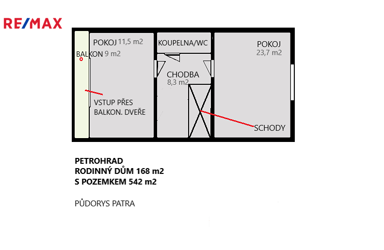 Patro: dva pokoje, chodba s podestou, sociální zázemí, ( koupelna s WC )