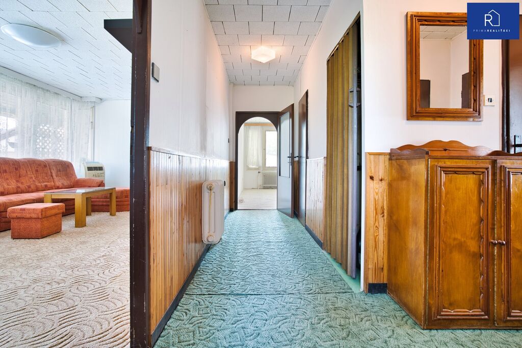Hledáte dům a prostory k podnikání? Exkluzivně Vám nabízíme slunný rodinný dům 3+1 v Horní Libině, s pěknou zahradou, velkou garáží (pro 2 autobusy) a pozemkem v klidné části obce, kousek od lesů. Přízemní dům (dřevostavba) je kompletně podsklepený s garáží, prádelnou, kotelnou a dalšími prostory. Vytápění domu je zajištěno kotlem na tuhá paliva, ohřev vody elektrickým bojlerem, voda obecní, odpad do septiku. V 1. NP naleznete zádveří, chodbu, obývák, ložnici, pokoj, kuchyň, koupelna s vanou, samostatné WC a spíž. Z obýváku můžete vejít na dlouhou terasu a odtud přímo na zahradu. Dům je určený k částečné rekonstrukci. Celková plocha zahrady činí 598 m2, které lze využít k odpočinku celé rodiny a známých ve velmi klidné lokalitě. S tímto pozemkem přímo sousedí parcela k podnikání (571 m2) a velkou garáží (125 m2; elektrika a voda; 3 místnosti). Lze využít různě nebo jen jako komfortní parkování několika karavanů a aut. V obci se nachází mateřská školka, základní škola, obchody, pohostinství, kulturní dům a sportoviště. Do Šumperka a Uničova to máte 15 km.