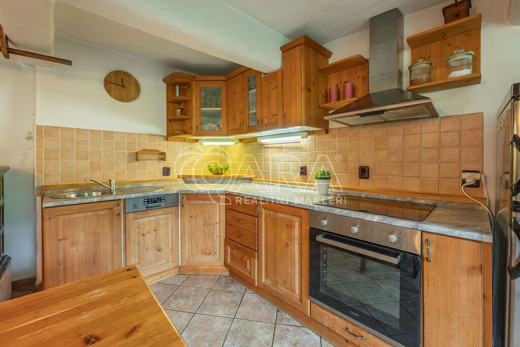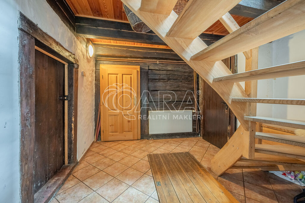 Dvoupodlažní chalupa o vnitřní výměře 152 m2 má aktuální dispozici 4+kk. Současnou dispozici lze však rozšířit až na 6+kk. První nadzemní podlaží chalupy sestává z předsíně (11,4 m2), obývacího pokoje s kuchyňským koutem (29 m2) a kachlovými kamny, ložnice (18,4 m2), koupelny se sprchovým koutem, rohovou vanou a toaletou (8,4 m2), spíže (1,6 m2) a kotelny (8 m2). Kuchyňská linka je vybavena vestavěnými spotřebiči. Z předsíně je vstup na prostornou terasu (20 m2). Druhé nadzemní podlaží tvoří ložnice (17,7 m2) odkud je vstup do dvou úložných prostorů (2x5 m2) a pokoj/galerie (18 m2). Z půdního prostoru o výměře 34 m2 lze vybudovat jeden případně dva další pokoje. Topení zajišťuje elektrokotel a kotel na tuhá paliva. Ohřev vody je řešen bojlerem.