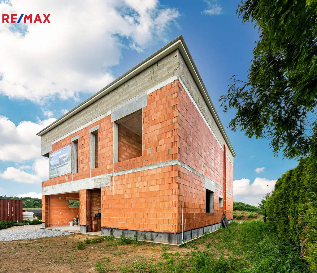 V ceně je zahrnuta kompletní hrubá stavba vč. zateplené střechy, napojení na inženýrské sítě (elektro, voda, kanalizace) + oplocení. Vše jak to vidíte na foto.