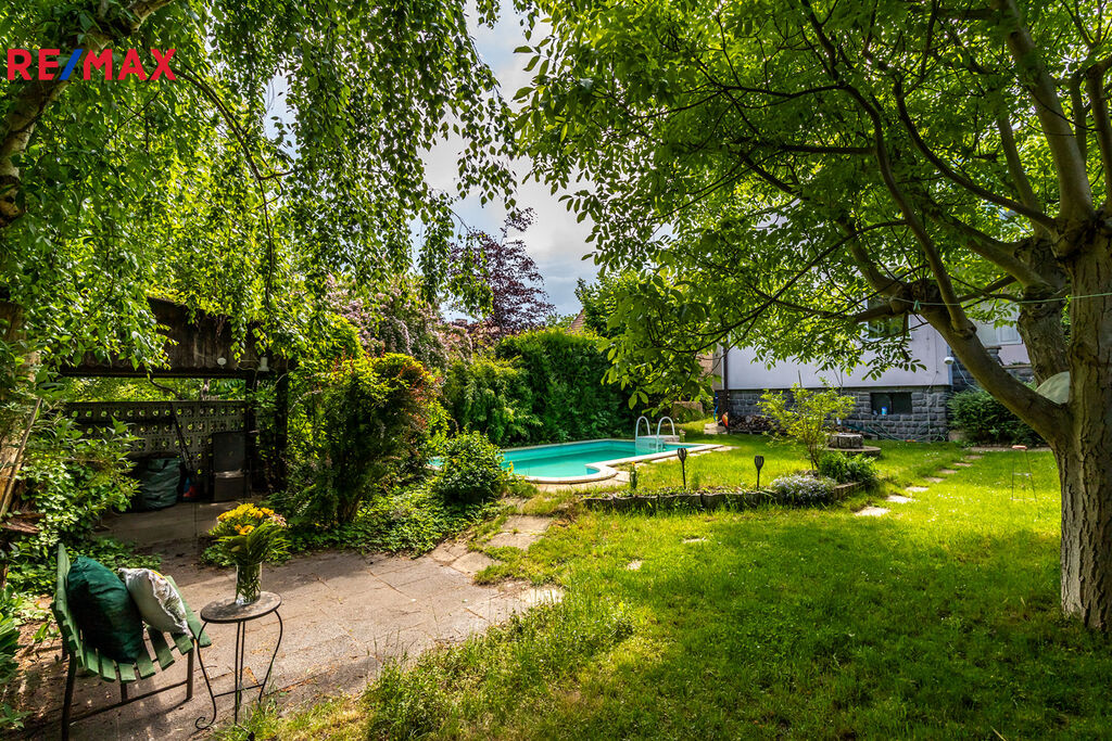 ✓ Příjemná zahrada s bazénem a krytou pergolou.