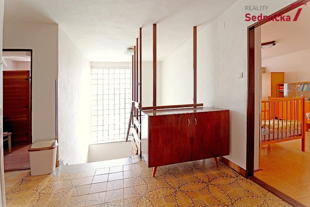 V přízemí domu je vstupní hala se schodištěm do prvního podlaží a na zahradu, kuchyň, velký pokoj s krbovými kamny, původně rozdělený příčkou na dva pokoje, dále koupena a WC. V patře potom jsou tři prostorné pokoje, koupelna, WC a v prostoru u schodiště je sauna. Na zahradě najdete sice starší, ale plně funkční zahradní domek.