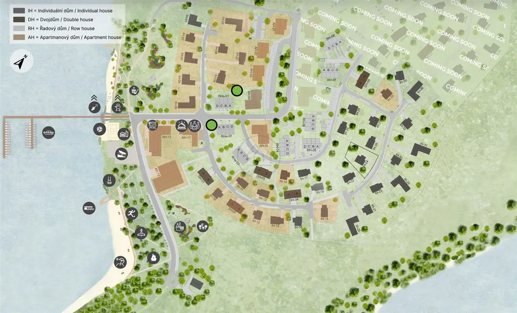 Jedná se o výjimečný a atraktivní resort, který cílí na všechny skupiny a má potenciál být nejlepším místem pro trávení volného času na Lipně. K dispozici bude recepce, beach bar a další služby. V areálu je také písčitá přírodní pláž, přístaviště pro 39 lodí, dětské hřiště a místa pro další aktivity jako pétanque, disk golf aj. Připraven je také rental a facility managment, který se stará o správu a údržbu resortu, odklízení sněhu, sekání trávy aj. Na prodej jsou i další pozemky, apartmány a řadové domy.