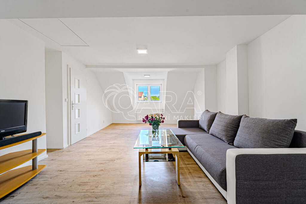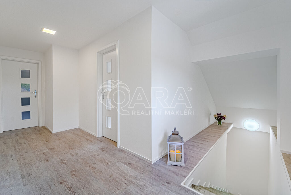 Obytné podkroví: Nabízí dva samostatné, světlé pokoje a koupelnu s vanou a toaletou.