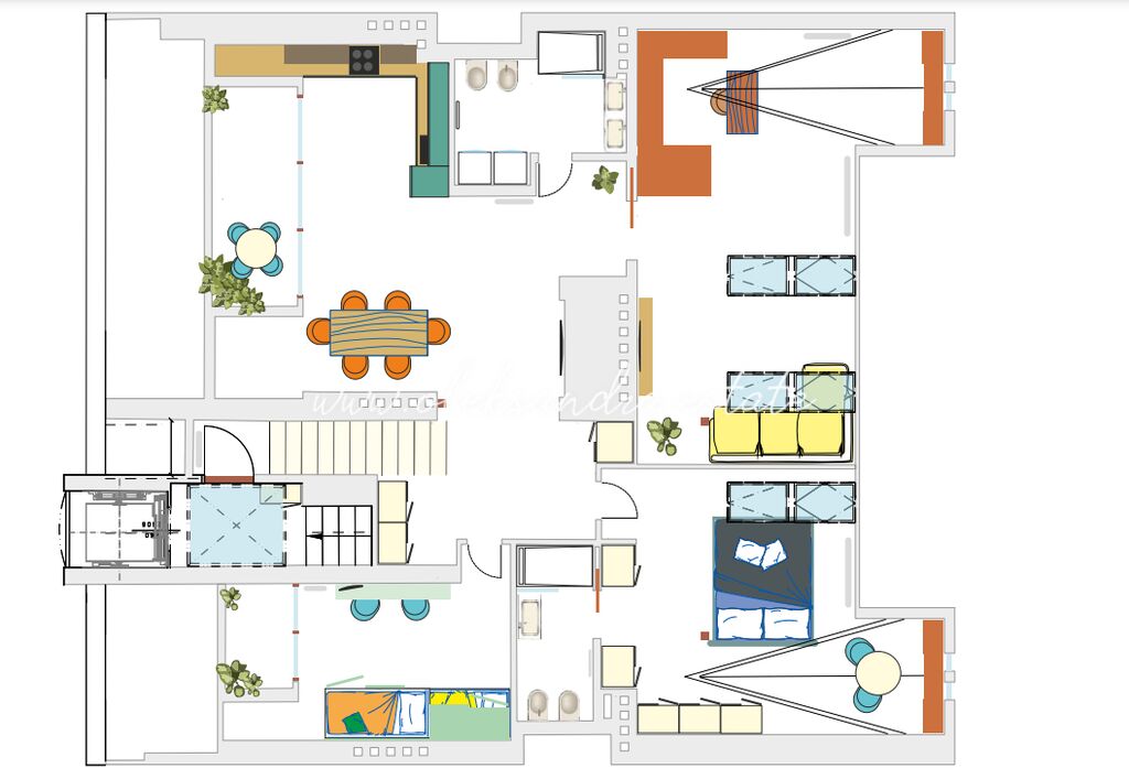 Byt právě prošel precizní a do detailu promyšlenou rekonstrukcí (2024) s důrazem na kvalitu, styl a funkčnost. Výsledkem je moderní, světlý interiér s italským šarmem  na míru vyrobená kuchyně z Itálie, obklady a dlažby Fondo Valle (120x120 cm), dubová podlaha I. třídy od Labor Legno. Každý pokoj je vybaven klimatizací, bezpečnostním alarmem, novými okny a rozvody. K dispozici je nový kondenzační plynový kotel Bosch. Samozřejmostí jsou dvě elegantní koupelny se sprchovým koutem, WC a bidetem.