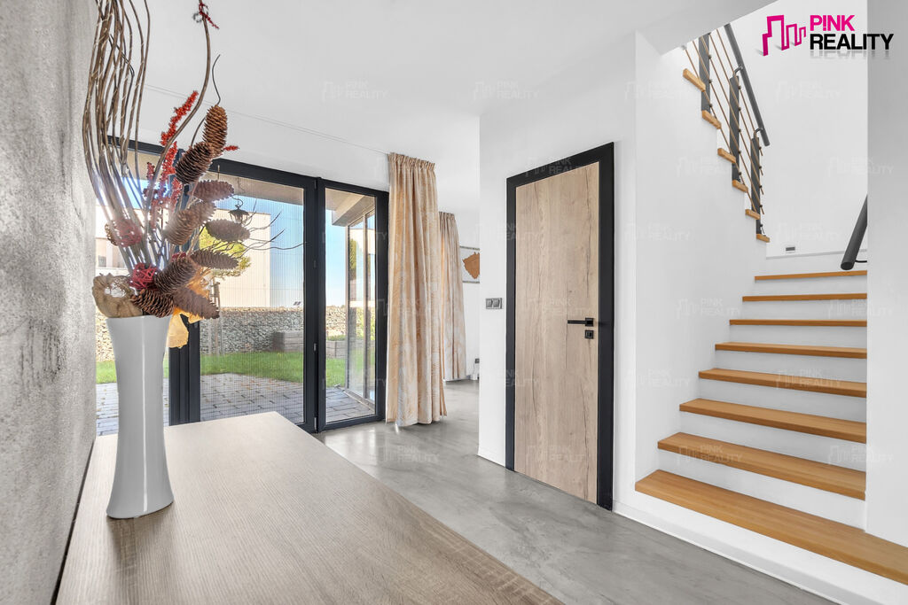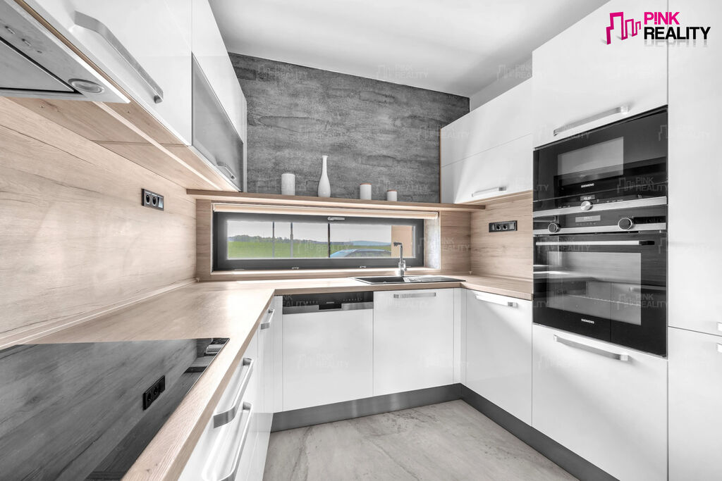 Nabízíme k prodeji dvoupodlažní rohový řadový rodinný dům 5+kk s garáží a zahrádkou ve velmi žádané lokalitě obce Kvasiny. Dům byl postaven v roce 2021, je posledním v bloku pěti řadových domů a díky tomu má i samostatný přístup na zahradu. Dispozice 1.NP jsou prostorné zádveří s úložným prostorem a vstupem do garáže, kuchyně s jídelnou a velký obývací pokoj s krbovými kamny a vstupem na zahradu, pracovna a WC. Do 2.NP vede betonové schodiště obložené dřevem, kde vstoupíme na prostornou centrální chodbu, dále se zde nacházejí tři pokoje, koupelna s vanou i sprchovým koutem a WC, technická místnost a dva balkony. Součástí kupní ceny je kuchyňská linka včetně vestavěných spotřebičů. Pro více informací či prohlídku kontaktujte naši bezplatnou linku.