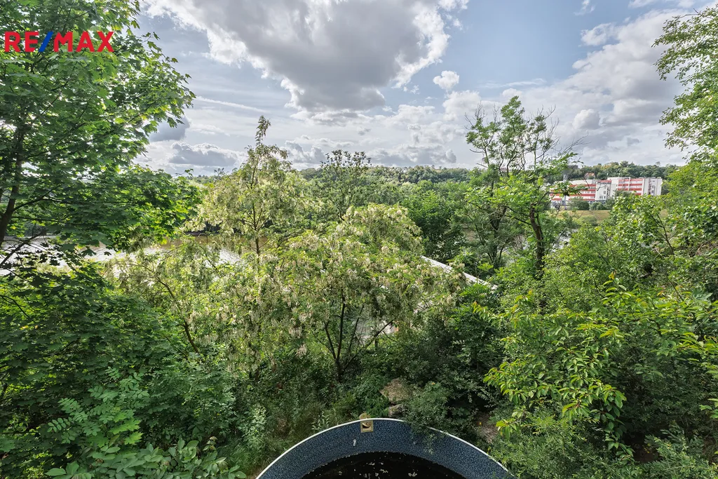 Nádherný výhled na krajinu, vodní hladinu a Roztocký zámek.