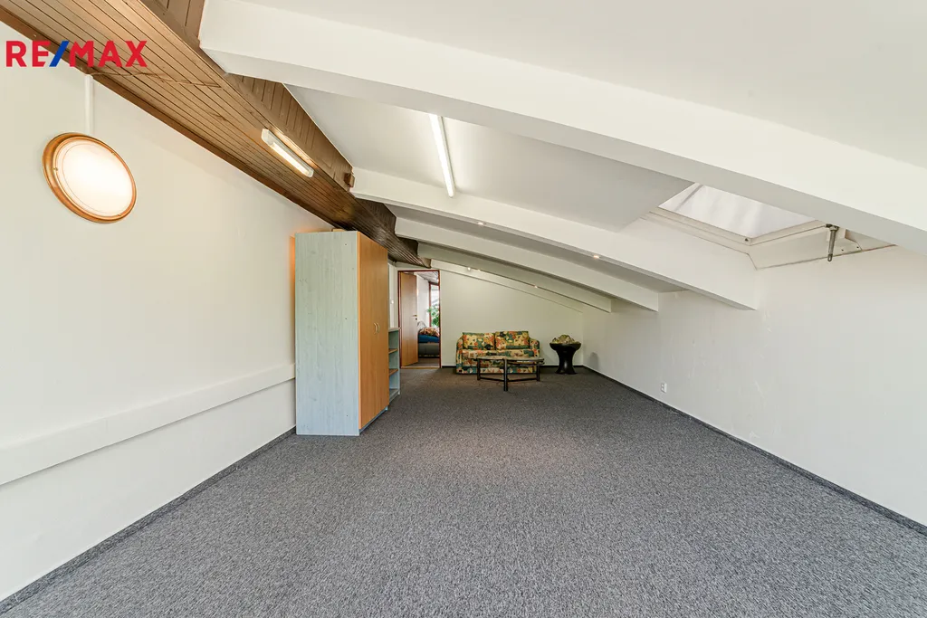 Zde se nachází prostorná společenská místnost 67 m2, ideální pro školení, semináře nebo další akce, a 5 dalších místností, které opět mohou sloužit jako kanceláře či ubytování. Opět tu najdete kuchyňku a sociální zařízení.