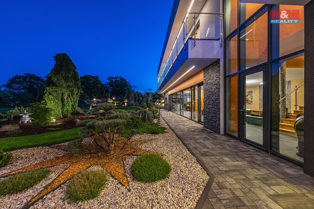 Prodej exkluzivní rodinné vily jen pár minut od Říčan a kousek od Prahy. Tato novostavba vás okouzlí nejen svou rozlehlostí a promyšleným designem, ale také technologickou vyspělostí a energetickou úsporností. Na pozemku o rozloze 6387 m² se nachází hlavní budova s užitnou plochou 895 m² a samostatný dům pro hosty o 160 m². Vila je koncipována jak pro velké setkávání s přáteli, tak pro klid v rodinném kruhu. Každý den si budete užívat velkolepou terasu navazující na hlavní ložnici, plynulé propojení interiéru s exteriérem, fantastické noční scenérie vaší zahrady a vždy se budete těšit domu, abyste mohli objevovat další detaily a zákoutí vašeho ráje. K vybavení patří fotovoltaická elektrárna s výkonem 56 kWp, tepelná čerpadla, podlahové vytápění, dobíjecí stanice pro elektromobily, desetimetrový přelivový bazén s wellness. Nechybí ani venkovní kuchyně s pecí na pizzu a domácí kino s klubem. Tento dům je ideálním místem pro ty, kteří hledají luxus, soukromí a klid.